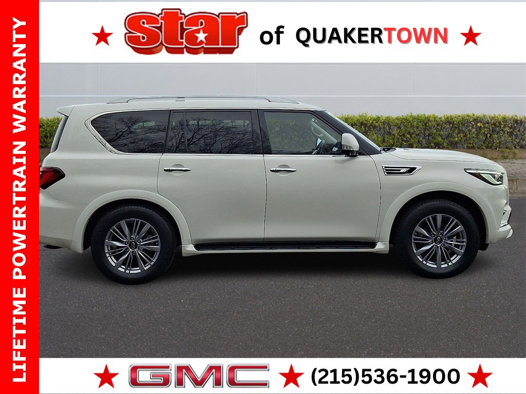 FREE Carfax Report Available, go to www.starofquakertown.com or call 215-536-1900, lifetime powertrain warranty, clean Carfax 1 owner, Dealer Maintained!!, local trade. Wheels: 20 x 8.0 Aluminum-Alloy. 2022 INFINITI QX80 Moonstone White LUXE 4WD 7-Speed Automatic 4D Sport Utility. New Years Sale! Trade in and trade up in 2026 with a quality preowned vehicle from Star that includes a lifetime powertrain warranty. No matter what you owe Star will give you top dollar to pay off your trade. Please contact sales at 215-536-1900 for details. Lehigh Valley's Largest GM Dealer! Star is a family owned and operated dealership that has been serving our area for over 54 years.