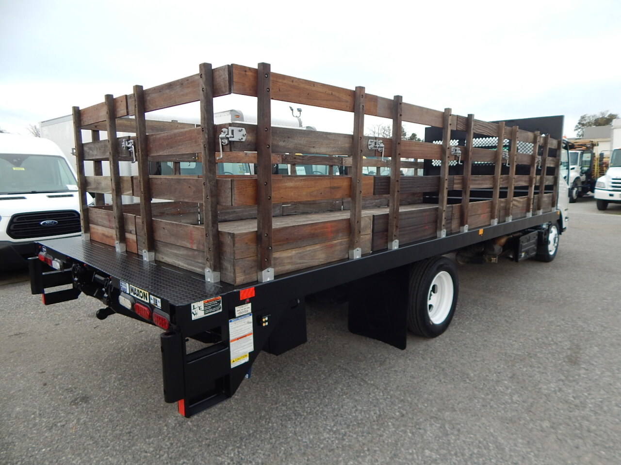 Don't miss this year's tax write-off! Remaining factory warranty. Low miles. 5.2L Isuzu Turbo Diesel. 20’ Marathon Flat Bed with 42” Stake Sides. 2,000 lb. Maxon TE-20L Tuck-Away Liftgate with 80”w x 36”d Steel Platform. Eligible for Section 179 tax writeoff. All of our vehicles go through a 73 point inspection plus equipment and road tests. Our team conducts a multi-point inspection of every part of the vehicle.