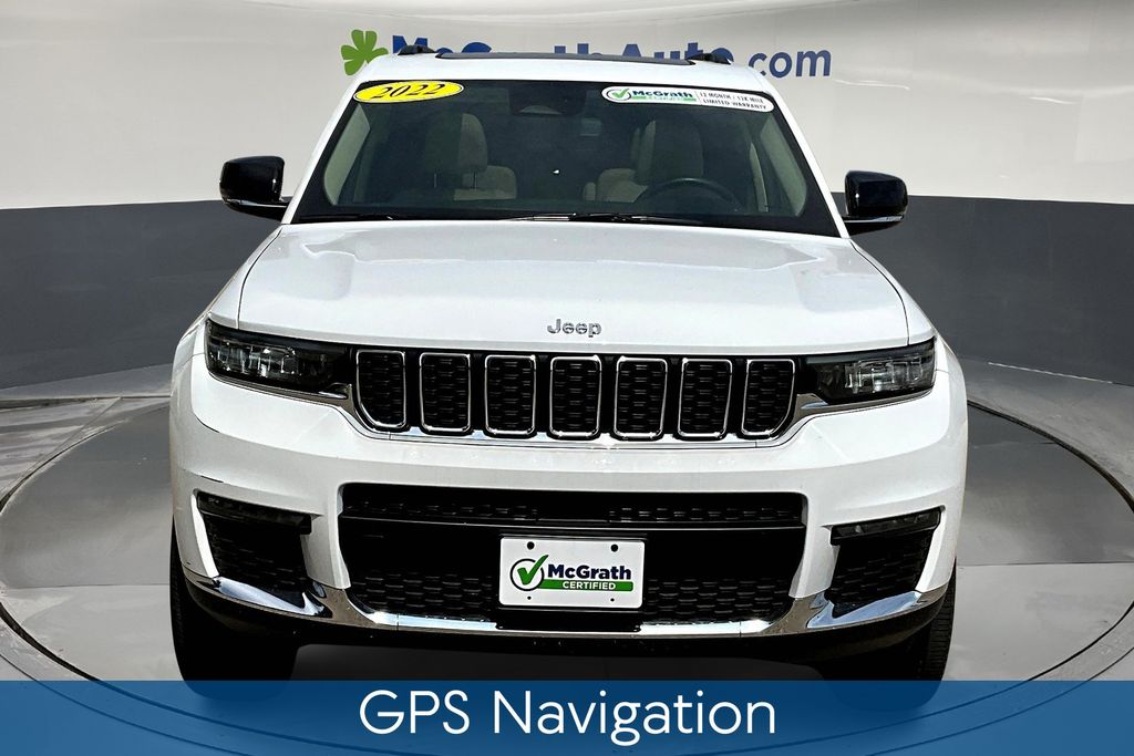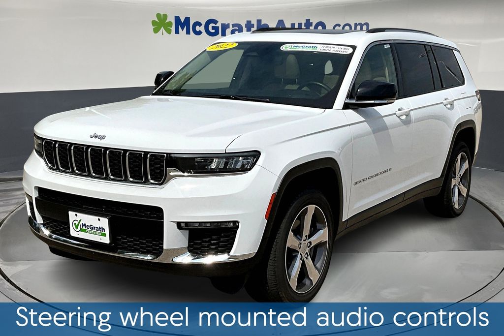 Elevate your driving experience with this striking 2022 Jeep Grand Cherokee L Limited. Boasting a captivating White exterior, this SUV combines refined style and uncompromising capability, making it the perfect companion for your adventures. Step inside and be enveloped in the luxurious Capri Leather-trimmed interior, where comfort and technology converge. The heated steering wheel and front/rear seats ensure a cozy ride, while the 506-watt amplifier and 9 speakers provide an immersive audio experience. Powered by a robust 3.6L V6 engine paired with an 8-speed automatic transmission, this Grand Cherokee L delivers impressive 4WD performance and efficiency, with an EPA-estimated 18 city/25 highway MPG. Safety and convenience are paramount, with features like the ParkView Rear Back-Up Camera, Blind Spot Monitoring, and Adaptive Cruise Control keeping you confident and in control. As a Certified Pre-Owned Jeep, this Grand Cherokee L has undergone a rigorous 125-point inspection and comes with a comprehensive warranty, giving you peace of mind and the assurance of quality. Elevate your driving experience and make this Jeep Grand Cherokee L Limited your own. Schedule a test drive today and discover the perfect blend of style, capability, and technology.