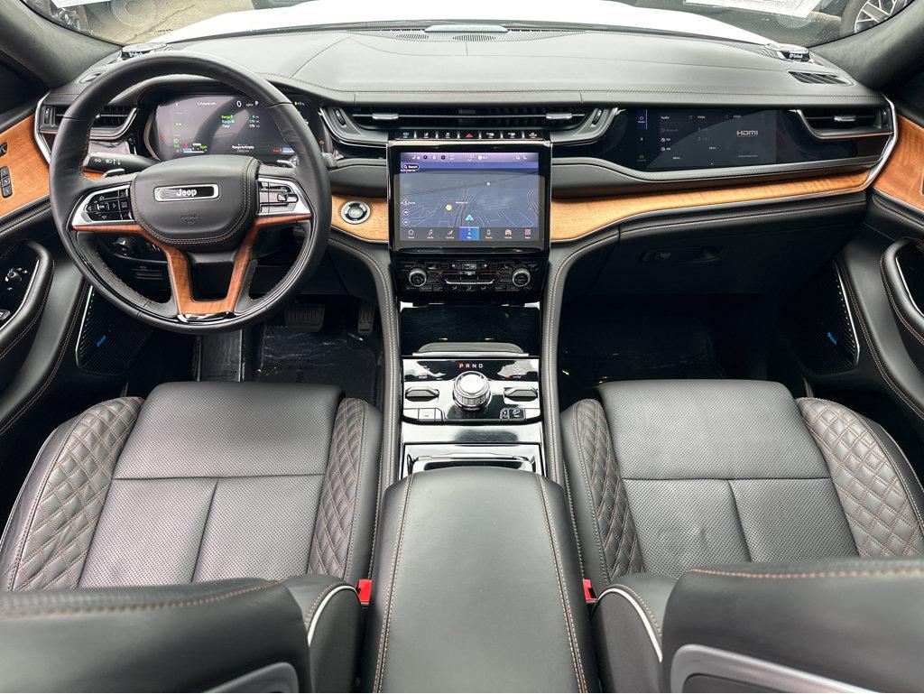 Simply stunning, our One Owner 2022 Jeep Grand Cherokee 4xe Summit Reserve 4X4 is a luxury SUV for leaving the pavement behind in Bright White w/ Black Two-Tone! Motivated by a TurboCharged 2.0 Liter 4 Cylinder and Dual Electric Motors providing a combined 375hp to an 8 Speed Automatic transmission. Iconic off-road performance awaits in this Four Wheel Drive, thanks to terrific trail-ready hardware, and it returns nearly 23mpg on the highway using gasoline. Plug into EV mode for nearly 26miles of all-electric driving, and prepare for stares almost anywhere with our Grand Cherokee's LED lighting, 21-inch alloy wheels, a black-painted top, a dual-pane sunroof, plus a hands-free liftgate. Our Summit Reserve cabin is a relaxing environment with heated/ventilated/massaging Palermo leather front and heated/ventilated rear seats, a heated leather/wood power steering wheel, quad-zone automatic climate control, and a 10.25-inch driver display. A 10.1-inch touchscreen, full-color navigation, wireless Android Auto/Apple CarPlay, Bluetooth, WiFi compatibility, voice recognition, and McIntosh audio deliver fantastic digital convenience. Jeep's intelligent safety systems can do it all with the Active Driving Assistant, automatic parking assistance, a surround-view system, a driver attention monitor, and more. Master modern adventure today in our Grand Cherokee 4xe Summit Reserve! Save this Page and Call for Availability. We Know You Will Enjoy Your Test Drive Towards Ownership!