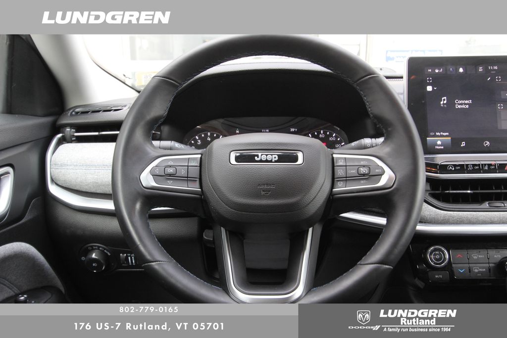 Our factory trained technicians completed the safety check, replaced the rear brakes and performed an oil and filter change. Compass Latitude, 4WD, 115V Auxiliary Power Outlet, 17" x 7" Painted Aluminum Wheels, 2nd Row USB Type A/C Charge Only, 360 Surround View Camera System, Adaptive Cruise Control w/Stop & Go, Air Conditioning ATC w/Dual Zone Control, All-Season Floor Mats, Auto-Dimming Rear-View Mirror, Convenience Group, Driver Assistance Group, Foot Activated Open 'N Go Liftgate, Heated Front Seats, Heated Steering Wheel, Humidity Sensor, Leather Wrapped Steering Wheel, P&P Park & Unpark Assist System, ParkSense Fr/Rr Park Assist System, ParkView Rear Back-Up Camera, Power Adjust 8-Way Driver Seat, Power Liftgate, Premium LED Fog Lamps, Quick Order Package 2GJ, Radio: Uconnect 5 w/10.1" Display, Rain Sensitive/Intermittent Wipers, Remote Start System, Reversible Carpet/Vinyl Cargo Mat, Security Alarm, Telescoping steering wheel, Tilt steering wheel, Universal Garage Door Opener, Vehicle Information Center, Windshield Wiper De-Icer, Wireless Charging Pad. Clean CARFAX. CARFAX One-Owner. 2022 Compass Bright White Clearcoat Jeep Latitude 4WD. Odometer is 2493 miles below market average! 22/30 City/Highway MPG 2.4L I4.