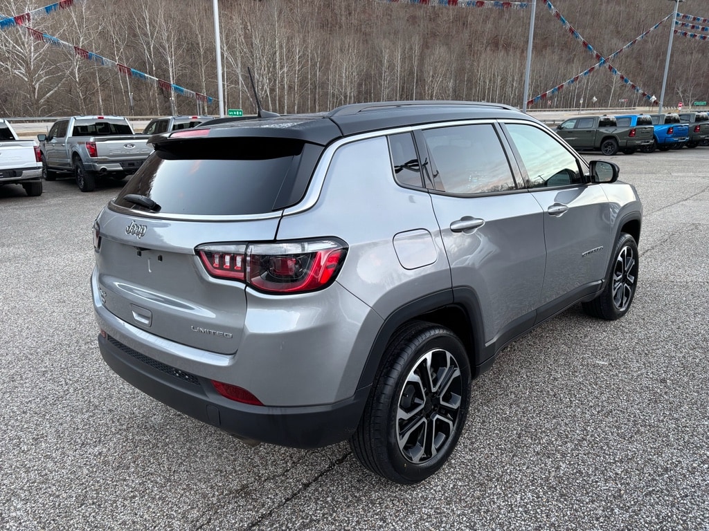 Discover a reliable 2022 Jeep Compass Limited with only 39,907 miles now available in Danville, WV. This eye-catching compact SUV combines efficiency and capability with a responsive 4-cylinder, 2.4L gasoline engine and confident 4WD for year-round traction on West Virginia roads. The Limited trim brings premium comfort and advanced features that elevate every drive. Inside you'll enjoy leather seats and a heated steering wheel for added comfort during chilly mornings. Technology and safety are prioritized with adaptive cruise control for relaxed highway driving and a back-up camera that simplifies parking and tight maneuvers. Entertainment is handled by XM Radio, delivering countless stations and listening options on the go. This Jeep Compass Limited has been carefully maintained and is competitively priced offering the best price in the area for comparable vehicles. Whether you need a capable commuter, a weekend adventure vehicle, or a family-friendly SUV, this Jeep strikes an excellent balance of style, performance, and value. Located in Danville, WV, this pre-owned 2022 Jeep Compass Limited won't last long at this price. Contact us today to schedule a test drive, review the vehicle history, and secure a smart purchase on a feature-rich SUV tailored to your lifestyle.