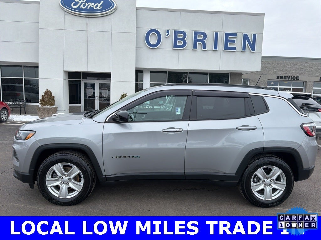 CARFAX One-Owner. 2022 Jeep Compass Latitude 2.4L I4 4D Sport Utility Billet Silver Metallic Clearcoat FWD 6-Speed Aisin Automatic 22/31 City/Highway MPG. The O'Brien Ford Pre-Owned Promise Used cars inspected ... reconditioned ... and given our seal of approval. Every used car we sell goes through a comprehensive 72-point inspection with a certified ASE technician. Pre-Owned Vehicles are eligible for extended warranties of up to seven years or 100,000 miles.