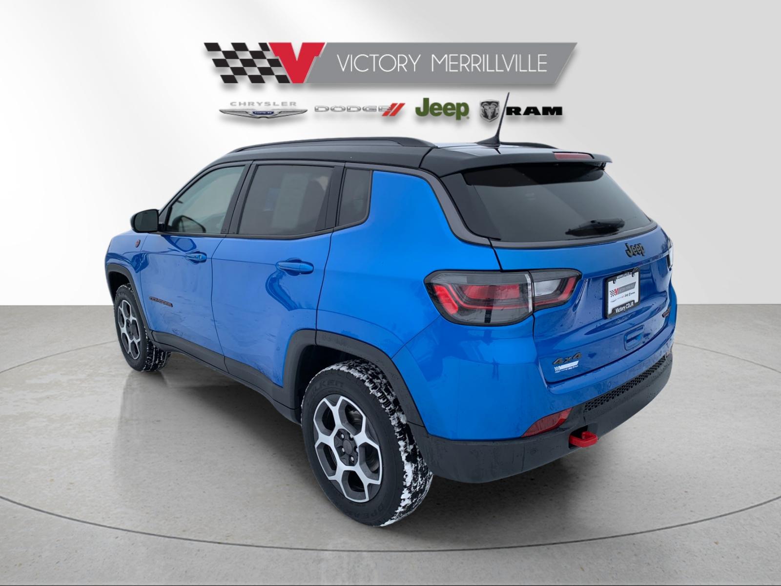 This 2022 Jeep Compass Trailhawk was recently acquired from Siloam Springs Arizona and is now at our store here in Merrillville. This Beauty has had and passed an extensive 182 Multi-Point Inspection conducted by our factory certified technicians. All necessary services have been done for the appropriate mileage interval including an oil change, air filter check, tire rotation, wheel alignment, GPS system installation, brake and rotor check, as well as a complete interior and exterior detail. Buy with confidence as each of our Pre-Owned Vehicles come equipped with a 90-Day/3000 Mile warranty as well as Car Doc, our exclusive maintenance and membership program. The included Car Doc Program comes with 6 Complimentary Oil Changes and 6 Complimentary Tire Rotations for the first TWO years of car ownership. Also, this vehicle is available to upgrade to a 3 Year or 5 Year Car Doc along with other perks to give you peace of mind when it comes to your driving experience. It's just what the doctor ordered!