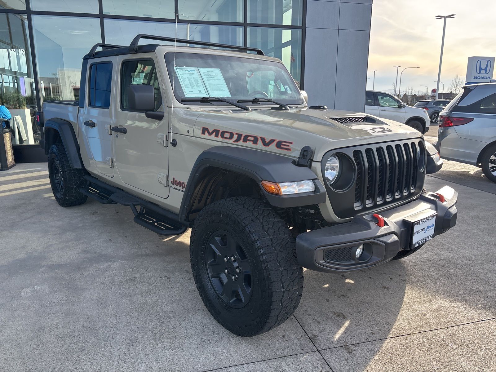 Clean Carfax/no accidents reported, 125 point safety inspection, dealer serviced, service records available, fresh oil change. 2022 Jeep Gladiator Mojave 4WD 3.6L V6 24V VVT 8-Speed Automatic Limited Edition Gobi Clearcoat. Recent arrival! We don't sell cars, we help people buy them! The Interstate Honda Promise. When you visit our Honda dealership in Chehalis, WA, you’ll experience the Interstate Honda Promise in action. Pressure-free buying experience. You’ll work with a team that listens first, explains clearly, and never pushes. Transparency in every step. No hidden fees, no required add-ons, and no surprises. Fair, straightforward pricing. Honest, competitive pricing designed to earn your trust. Convenience on your schedule. Online or in-store tools help you shop your way. Quality you can count on. Every vehicle is hand-selected and thoroughly inspected. Support long after the sale. From service to genuine Honda parts, we’re here for the long haul. Respect, honesty & real human care. Your needs come first — always.