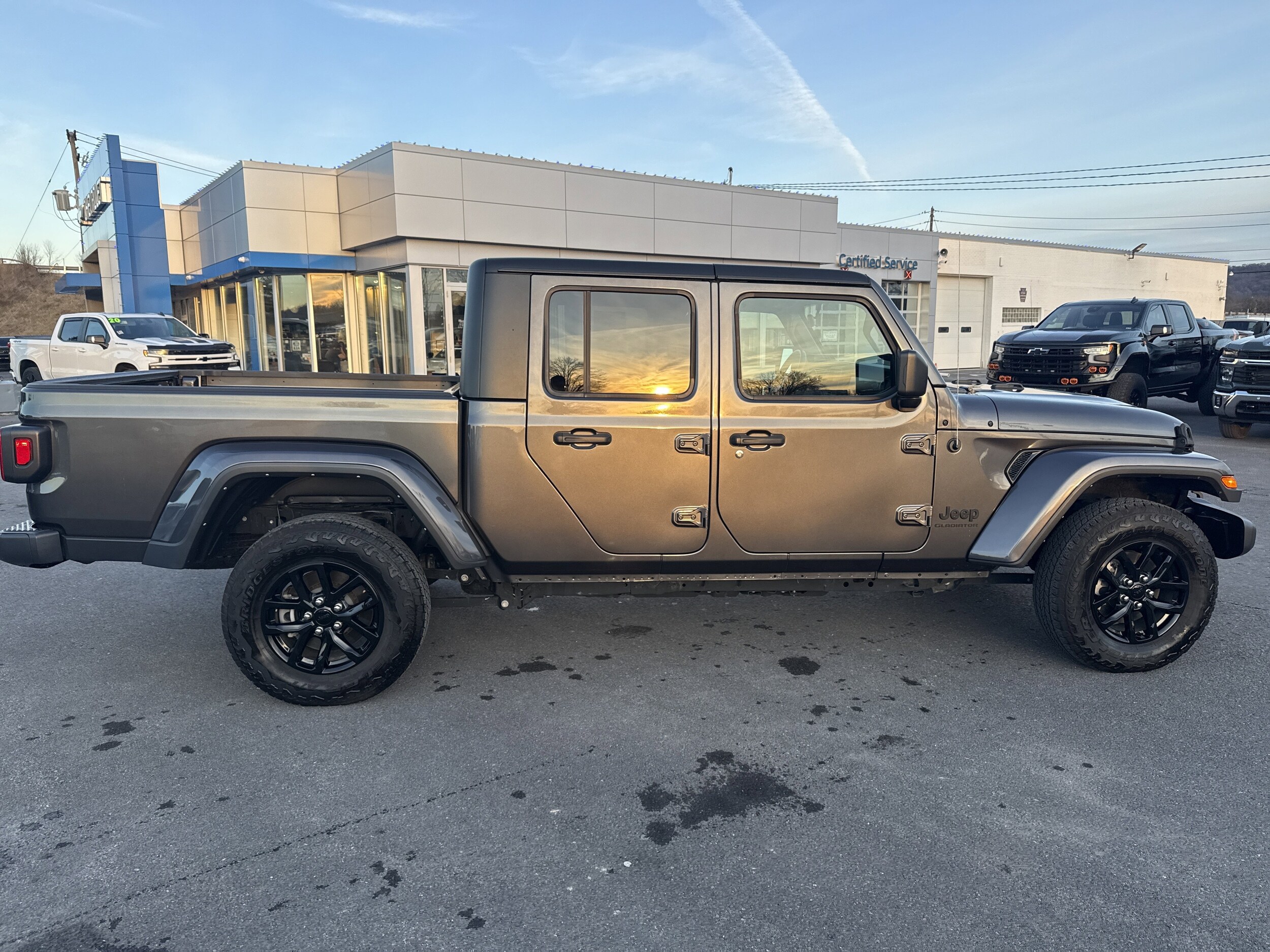 Granite Crystal Metallic Clearcoat 2022 Jeep Gladiator Sport 4WD 8-Speed Automatic 3.6L V6 24V VVT 4 wheel drive/all wheel drive, one owner, serviced here, free lifetime state inspections, only at Blaise Alexander Chevy GMC of Selinsgrove. Recent arrival!