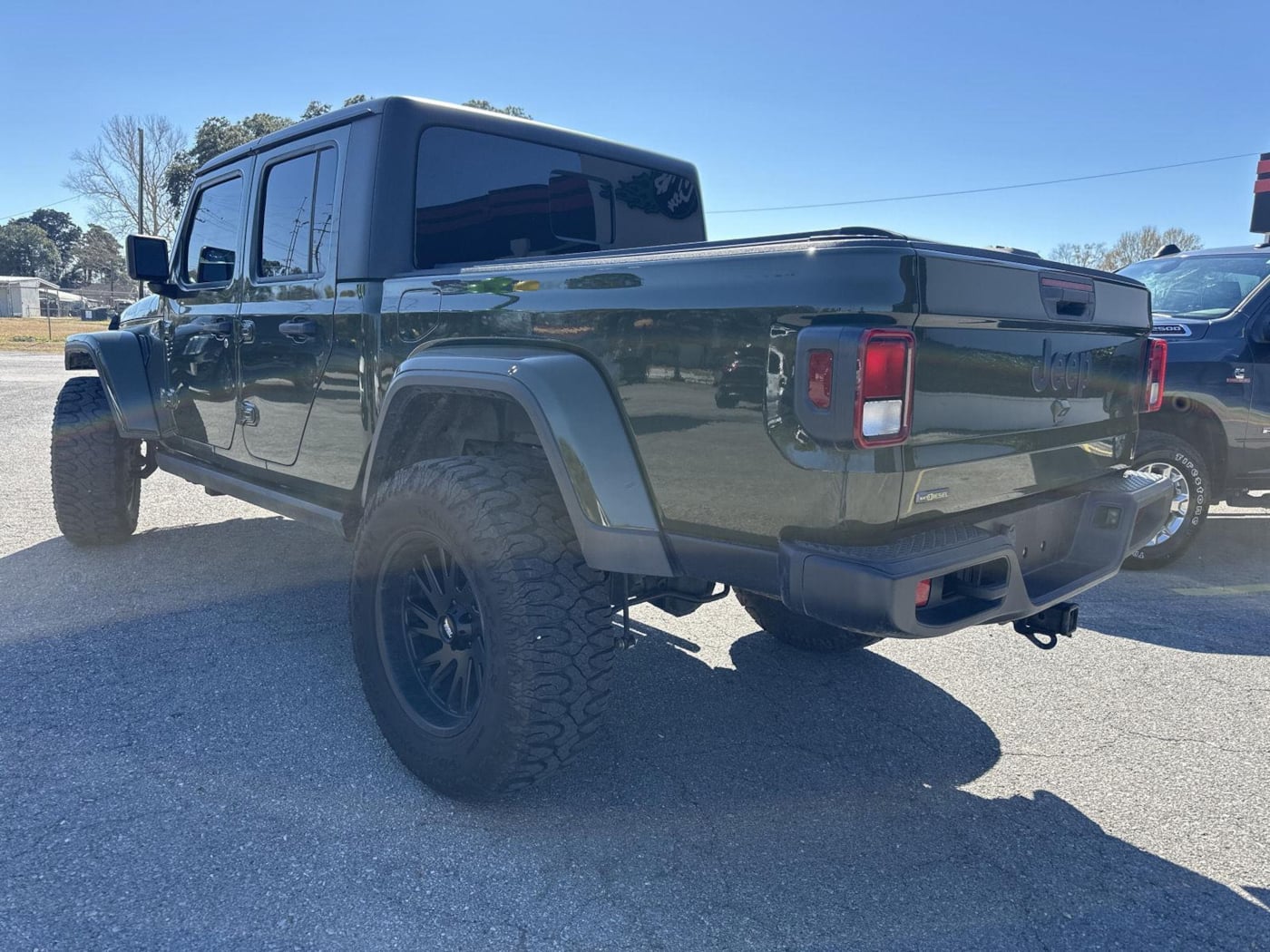 This 2022 Jeep Gladiator Willys, has a Sarge Green Clearcoat exterior and an Heritage Tan/Black interior color. 41,109 miles. Stock Number 13071. You can connect with us by calling 337-232-6969. No Accidents! ENGINE: 3.0L V6 TURBO DIESEL W/ESS G3, TRANSMISSION: 8-SPEED AUTOMATIC (8HP75), QUICK ORDER PACKAGE 26W WILLYS, TIRES: LT255/75R17C OWL ON/OFF ROAD, SARGE GREEN CLEARCOAT, HERITAGE TAN/BLACK, CLOTH LOW-BACK BUCKET SEATS, CONVENIENCE GROUP, TECHNOLOGY GROUP, AUXILIARY SWITCH GROUP, TRAILER TOW PACKAGE, BLACK 3-PIECE HARD TOP, CORNING GORILLA GLASS, SIRIUSXM SATELLITE RADIO, 2-DOOR PASSIVE ENTRY, FRONT DOOR LOCKS.