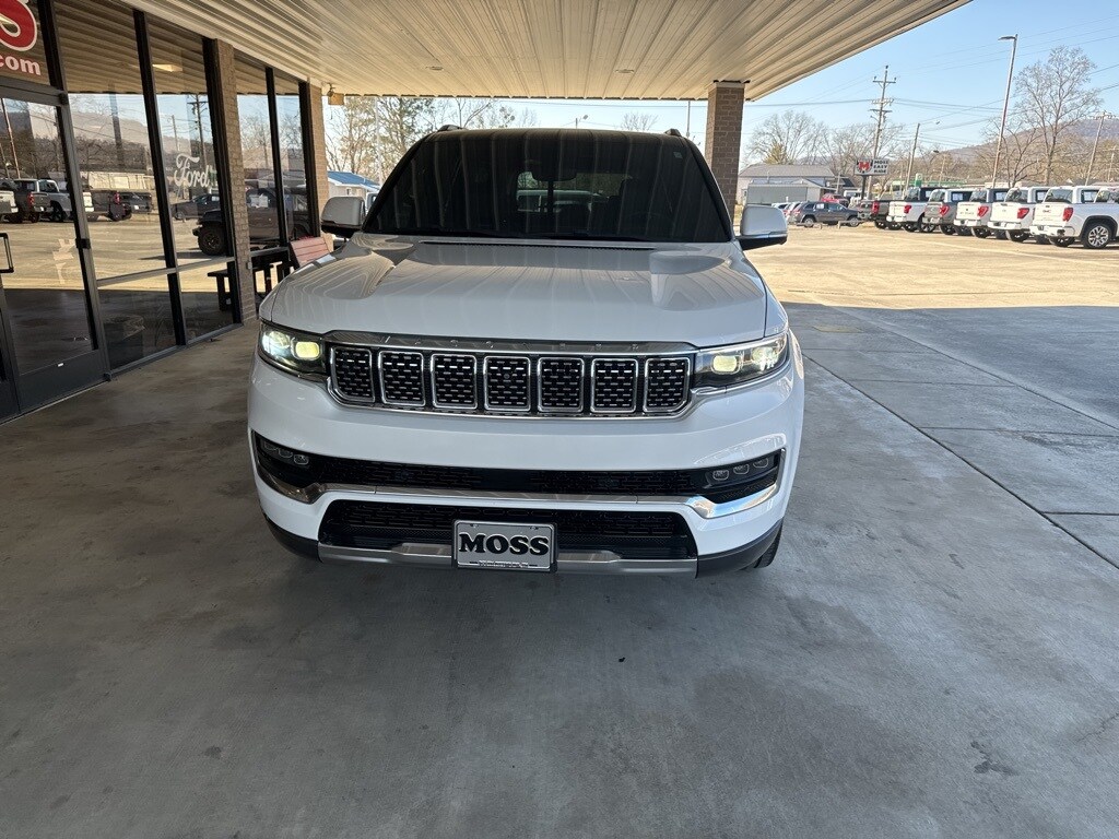 Recent Arrival! Carfax One-Owner. Odometer is 18826 miles below market average! Moss Motor Company is pleased to offer this 2022 Jeep Grand Wagoneer Series I in Bright White Clearcoat equipped with: Quick Order Package 23S, Two Tone Paint Group, Apple CarPlay / Android Auto, Bluetooth / Hands Free Cell Phone, Leather Seats, Moonroof / Sunroof, Navigation GPS, Rear Back Up Camera, Service Records Available, 19 Speakers, 3rd row seats: bench, 4-Wheel Disc Brakes, ABS brakes, Active Cruise Control, Adjustable pedals, Air Conditioning, Alloy wheels, AM/FM radio: SiriusXM with 360L, Anti-whiplash front head restraints, Audio memory, Auto High-beam Headlights, Auto-dimming door mirrors, Auto-dimming Rear-View mirror, Auto-leveling suspension, Automatic temperature control, Brake assist, Bumpers: body-color, Compass, Delay-off headlights, Driver door bin, Driver vanity mirror, Driver's Seat Mounted Armrest, Dual front impact airbags, Dual front side impact airbags, Electronic Stability Control, Four wheel independent suspension, Front anti-roll bar, Front Bucket Seats, Front Center Armrest w/Storage, Front dual zone A/C, Front fog lights, Front Passenger Interactive Display, Front reading lights, Fully automatic headlights, Garage door transmitter, Genuine wood console insert, Genuine wood dashboard insert, Genuine wood door panel insert, Heads-Up Display, Heated door mirrors, Heated front seats, Heated rear seats, Heated steering wheel, Illuminated entry, Knee airbag, Leather steering wheel, Leather Trimmed Bucket Seats, Low tire pressure warning, Memory seat, Navigation System, Normal Duty Suspension, Occupant sensing airbag, Outside temperature display, Overhead airbag, Overhead console, Panic alarm, Passenger door bin, Passenger seat mounted armrest, Passenger vanity mirror, Pedal memory, Power adjustable front head restraints, Power door mirrors, Power driver seat, Power Liftgate, Power moonroof, Power passenger seat, Power steering, Power windows, Radio data system, Radio: Uconnect 5 Nav w/12.0" Display, Rain sensing wipers, Rear air conditioning, Rear anti-roll bar, Rear dual zone A/C, Rear reading lights, Rear seat center armrest, Rear window defroster, Rear window wiper, Reclining 3rd row seat, Remote keyless entry, Security system, Speed control, Speed-sensing steering, Speed-Sensitive Wipers, Split folding rear seat, Steering wheel memory, Steering wheel mounted audio controls, Tachometer, Telescoping steering wheel, Tilt steering wheel, Traction control, Trailer Brake Control, Trip computer, Turn signal indicator mirrors,