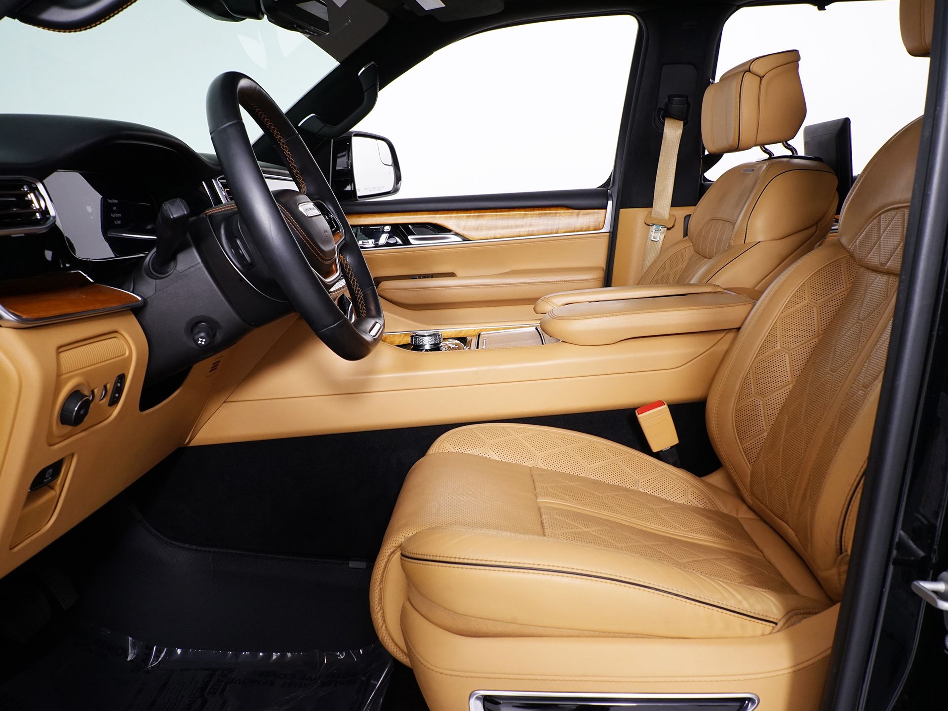 Diamond Black Crystal Pearlcoat 2022 Jeep Grand Wagoneer Series III 4WD 8-Speed Automatic 6.4L V8 2nd Row Dual Charge-Only USB Ports, 40/20/40 Power Recline Tip/Slide, 8-Passenger Seating, Amazon Fire TV Built-In, Auto-leveling suspension, Automatic temperature control, Body Color Roof, Brake assist, Electronic Stability Control, Flexible Seating Group, Four wheel independent suspension, Heads-Up Display, Heated door mirrors, Heated front seats, Navigation System, Power Liftgate, Power moonroof, Premium Leather Trimmed Bucket Seats, Quick Order Package 23W, Rear Seat Video Group 1, Remote keyless entry, Seatback Video Screens, Split folding rear seat, Two Tone Paint Group, Video USB Port, Wheels: 22" x 9.0" Premium 4 Aluminum. Recent Arrival! Odometer is 17582 miles below market average!