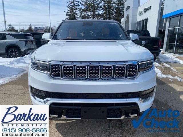 2022 Jeep Grand Wagoneer Series III 4D Sport Utility 4WD 6.4L V8 8-Speed Automatic Bright White Clearcoat. Odometer is 6608 miles below market average! Priced below KBB Fair Purchase Price! Barkau Automotive has a long history in Northern Illinois. We have been providing the region with a huge selection of vehicles since 1952, and in 2007 we began providing new vehicles through our Stockton, IL location. We believe in giving our customers the best in customer service every time that they come here. We don't care if you came here to get a brand new car or just to get a question answered. We will work hard to make sure that you left Barkau Automotive with everything that you needed. The Bark is over 70,000 vehicles under its belt, and we did not get this far by accident.