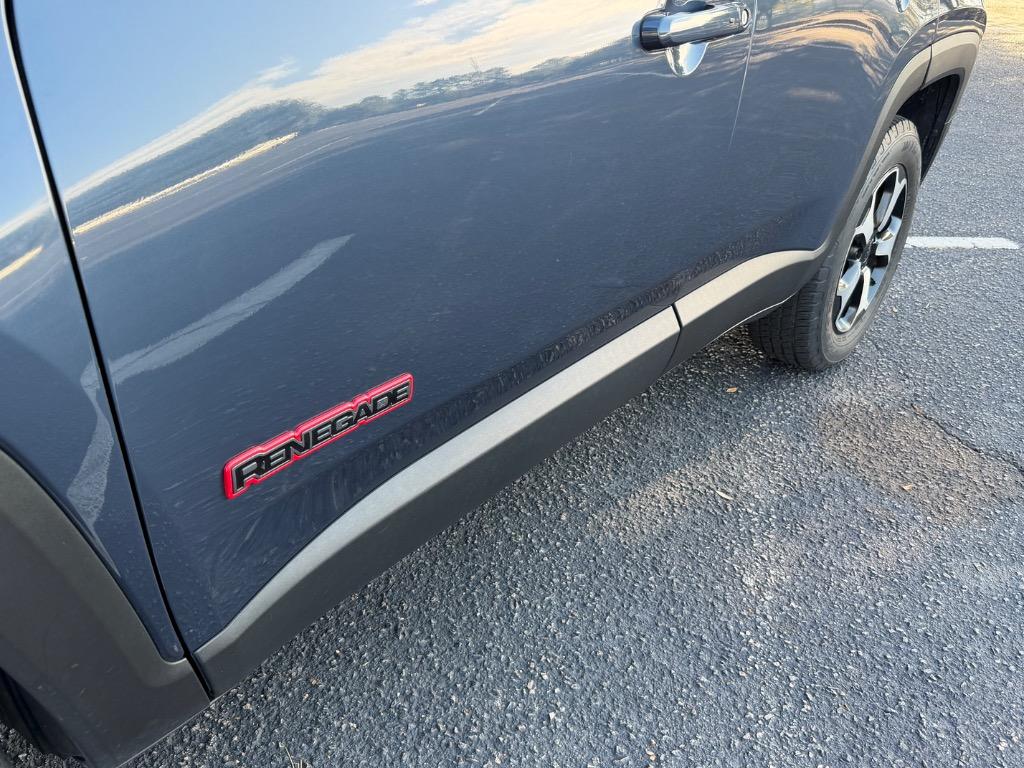 2022 Jeep Renegade Trailhawk. 1.3L. 4x4. Carfax certified great reliability vehicle. Only 19,700K miles! Slate Blue Pearl exterior. Black leather interior with Red accents ($995.00). Remote engine start. Keyless entry. Push to start engine. Heated leather wrapped steering wheel with hands free talk. Audio and cruise controls. Display screen with navigation. Backup camera. Media hub with Uconnect. SiriusXM. Bluetooth. Apple CarPlay. Android Auto. 6 speaker surround sound system. Dual climate control. Drive modes. Auto, Snow, Sand, Mud, Rock. All weather rubber floor mats. Heated front leather bucket seats. Rear USB ports. Rear leather bench seat. Cargo storage. Rear windshield wiper. Black roof rack. Black front grille. Red front tow hooks. Color keyed door handles. Black side mirrors with blind spot monitoringing. 17 inch Jeep factory wheels.