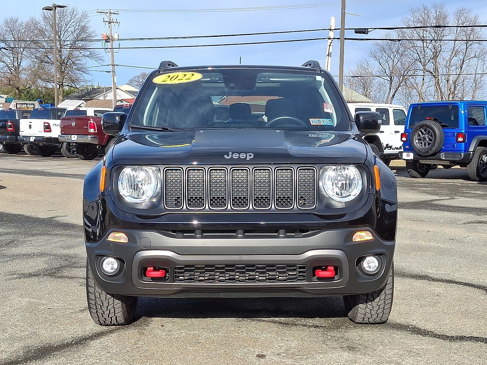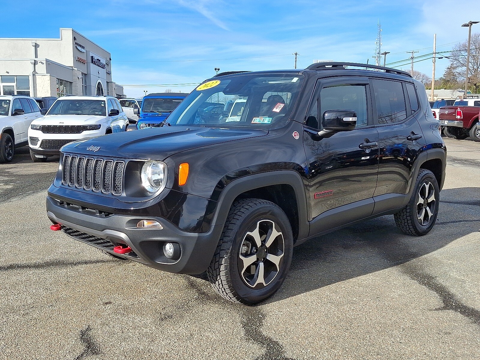 Clean CARFAX. CARFAX One-Owner. Black Clearcoat 2022 Jeep Renegade Trailhawk 4WD 9-Speed 948TE Automatic 1.3L I4 FRESH PA STATE INSPECTION!! WELL MAINTAINED!! LOCAL TRADE!! 4 RECENT NEW TIRES!!! DUAL PANE PANO ROOF!!! PREMIUM AUDIO SYSTEM!!! LEATHER SEATING PACKAGE!!! FULL FACTORY REMAINING WARRANTY!!! ORIGINAL MSRP $36225!! Renegade Trailhawk 4D Sport Utility Black Clearcoat Black Leather Dual-Pane Panoramic Power Sunroof Navigation System Premium Audio Quick Order Package 22C Sun/Sound Group. Enjoy your first oil change on us provided by our friendly and attentive staff. Recent Arrival! Odometer is 2208 miles below market average! 22/27 City/Highway MPG