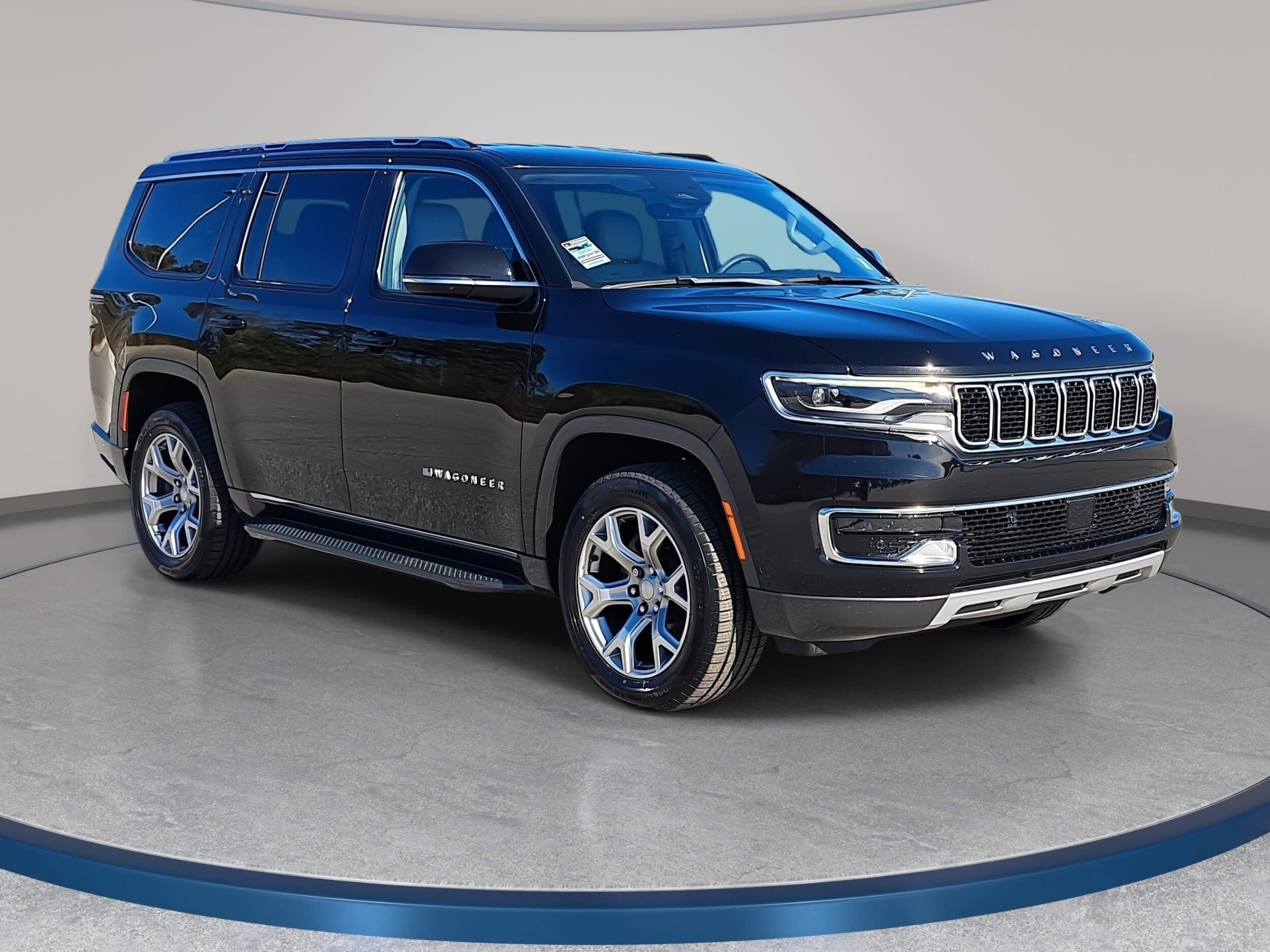Diamond Black Crystal Pearlcoat 2022 Jeep Wagoneer Series II 4WD 8-Speed Automatic 5.7L V8 Local Trade, Non-Smoker, 3.21 Rear Axle Ratio, Brake assist, Electronic Stability Control, Exterior Parking Camera Rear, Front dual zone A/C, Heated front seats, Leather Trimmed Bucket Seats, Memory seat, Navigation System, Pedal memory, Power driver seat, Power Liftgate, Power passenger seat, Quick Order Package 22J, Radio: Uconnect 5 Nav w/10.1" Display, Rain sensing wipers, Rear air conditioning, Rear window wiper, Reclining 3rd row seat, Remote keyless entry, Speed-Sensitive Wipers, Steering wheel memory, Steering wheel mounted audio controls, Ventilated front seats, Wheels: 20" x 9.0" Aluminum Base Finish.