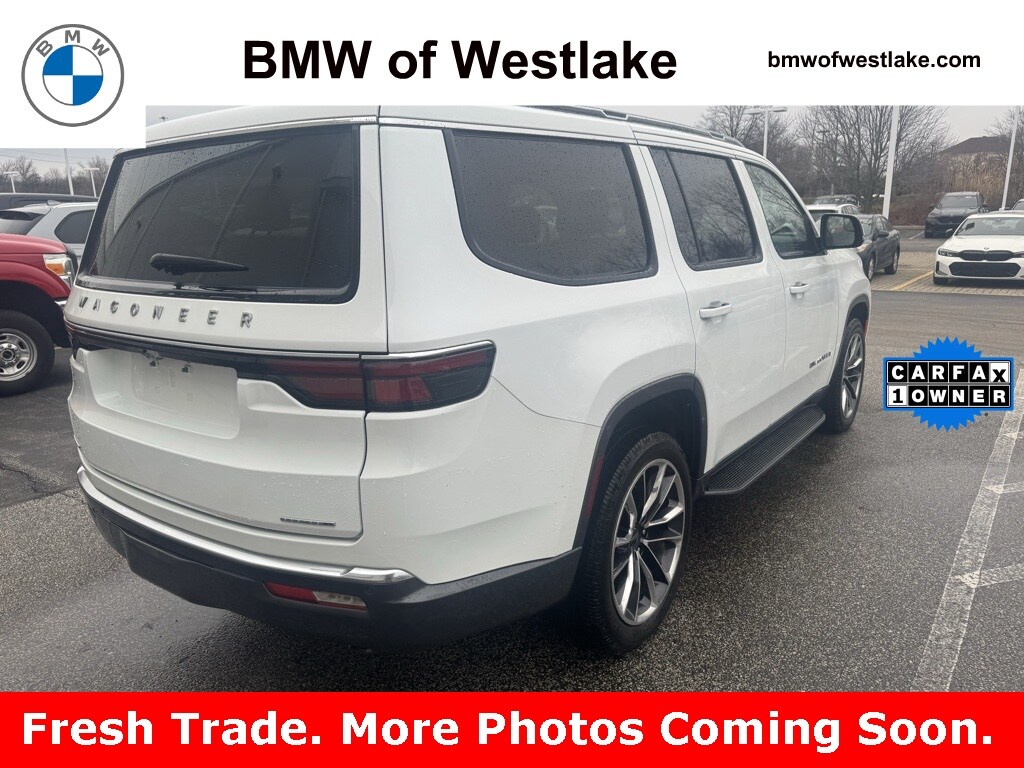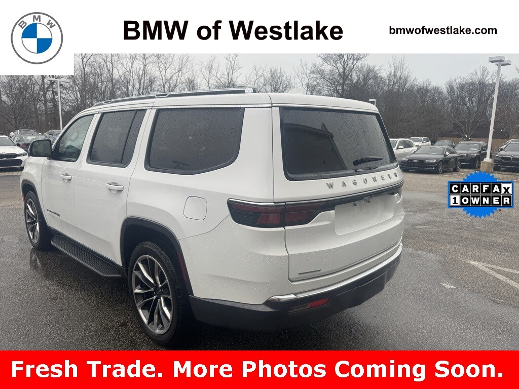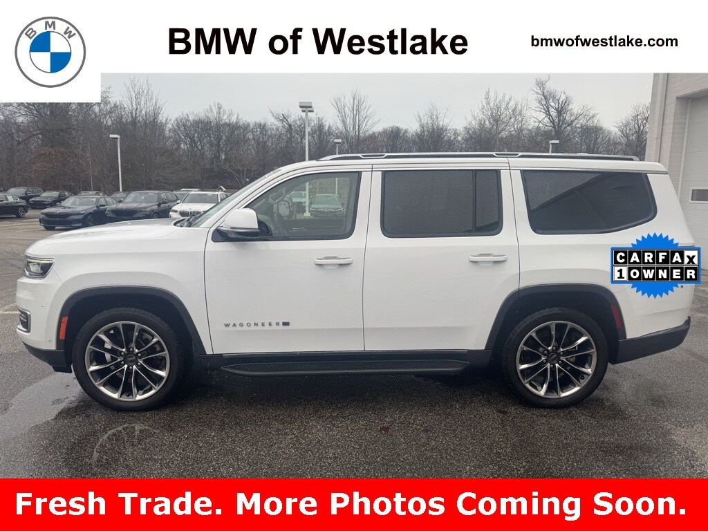 Recent Arrival! 2022 Bright White Clearcoat Jeep Wagoneer Series II 4WD 8-Speed Automatic 5.7L V8 This Jeep Wagoneer has many features and is well equipped including, 3 Panel Sunroof, 60/40 Power Recline 3rd Row Seat, 7-Passenger Seating, Adjustable Roof Rail Crossbars, All-Season Floor Mats, Cargo Cover, Cargo Tray, Flexible Seating Group, Floor Console w/Cupholder, MOPAR Interior Protection Package, Navigation System, Power Tip/Slide Recline 2nd Row Buckets, Premium Group I (DISC), Quick Order Package 22J, Reversible Carpet/Vinyl Cargo Mat. Priced below KBB Fair Purchase Price! CARFAX One-Owner. Odometer is 6863 miles below market average! Westlake has been proudly serving Northeast Ohio for over 35 years. Since opening our doors, BMW of Westlake has maintained a solid commitment to you, our customers, offering the widest selection of BMW vehicles and ease of purchase. We welcome out of state shoppers! Call 440-887-0000 or visit our website at www.bmwofwestlake.com to see more.