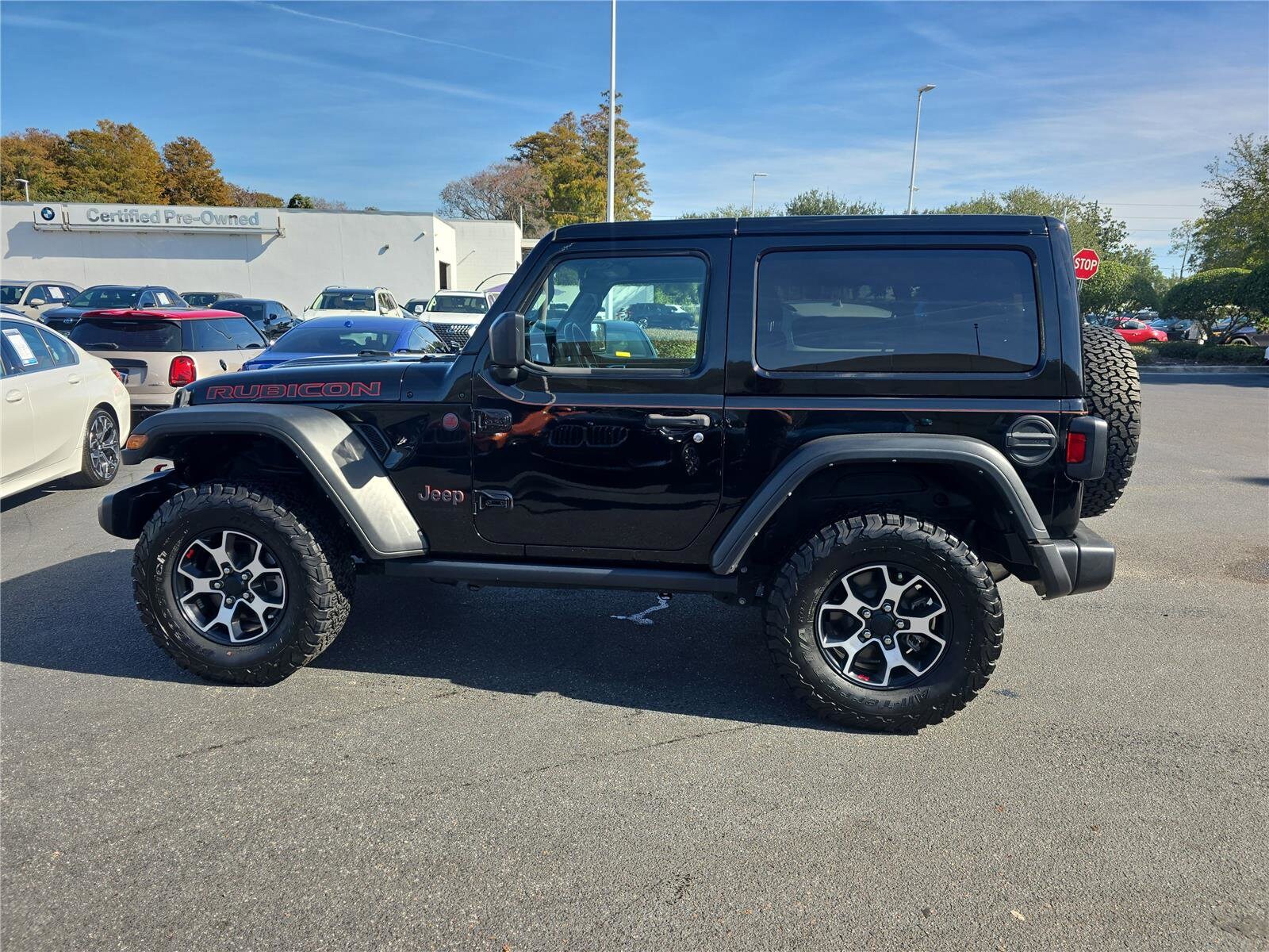 The 2022 Jeep Wrangler Rubicon 4x4 is a used vehicle located at Fields BMW Winter Park. It features a Black Clearcoat exterior and a Black interior. The vehicle is equipped with a navigation system, automatic temperature control, emergency communication system, wireless phone connectivity, exterior parking camera rear, front dual zone A/C, auto-dimming rearview mirror, remote keyless entry, convertible hard top, steering wheel mounted audio controls, rear window wiper, and fully automatic headlights. The engine is a 2.0L intercooled turbo and the transmission is an 8 speed automatic. The vehicle offers four-wheel drive and seating for four. Please contact the store by email or phone for details and availability of incentives.