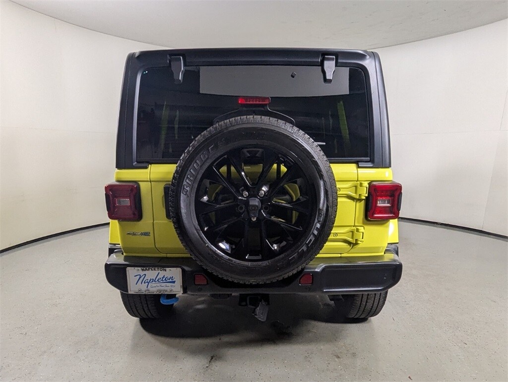 Recent Arrival! High Velocity Clearcoat 2022 Jeep Wrangler Unlimited Sahara 4xe Unlimited Sahara 4xe 4WD 2.0L I4 DOHC 4D Sport Utility Odometer is 2463 miles below market average! This Wrangler is well equipped with Advanced Safety Group (Adaptive Cruise Control w/Stop, Advanced Brake Assist, Auto High Beam Headlamp Control, and Full Speed Forward Collision Warning Plus), Cold Weather Group (Heated Front Seats, Heated Steering Wheel, and Remote Start System), Quick Order Package 29P, Safety Group (Blind Spot & Cross Path Detection and ParkSense Rear Park Assist System), Trailer Tow & HD Electrical Group (7 & 4 Pin Wiring Harness, 700 Amp Maintenance Free Battery, Auxiliary Switches, and Class II Receiver Hitch), 2.0L I4 DOHC, 3.73 Rear Axle Ratio, 4-Wheel Disc Brakes, 9 Speakers, ABS brakes, Air Conditioning, Alloy wheels, AM/FM radio, Apple CarPlay/Android Auto, Auto-dimming Rear-View mirror, Automatic temperature control, Black 3-Piece Hard Top, Brake assist, Compass, Delay-off headlights, Driver door bin, Driver vanity mirror, Dual front impact airbags, Dual front side impact airbags, Electronic Stability Control, Emergency communication system: SiriusXM Guardian, Freedom Panel Storage Bag, Front anti-roll bar, Front Bucket Seats, Front Center Armrest w/Storage, Front dual zone A/C, Front fog lights, Front reading lights, Fully automatic headlights, Garage door transmitter, Heated door mirrors, Illuminated entry, Integrated roll-over protection, Leather Shift Knob, Leather steering wheel, Low tire pressure warning, Manufacturer's Statement of Origin, Navigation System/ GPS, No Soft Top, Occupant sensing airbag, Outside temperature display, Panic alarm, ParkView Rear Back-Up Camera, Passenger door bin, Passenger vanity mirror, Power door mirrors, Power steering, Power windows, Premium McKinley Trimmed Seats, Radio data system, Radio: Uconnect 4C Nav w/8.4" Display, Rear anti-roll bar, Rear reading lights, Rear seat center armrest, Rear Window Defroster, Rear Window Wiper/Washer, Remote keyless entry, Security system, Speed control, Split folding rear seat, Sport Suspension, Steering wheel mounted audio controls, Tachometer, Telescoping steering wheel, Tilt steering wheel, Traction control, Trip computer, Variably intermittent wipers, Voltmeter.