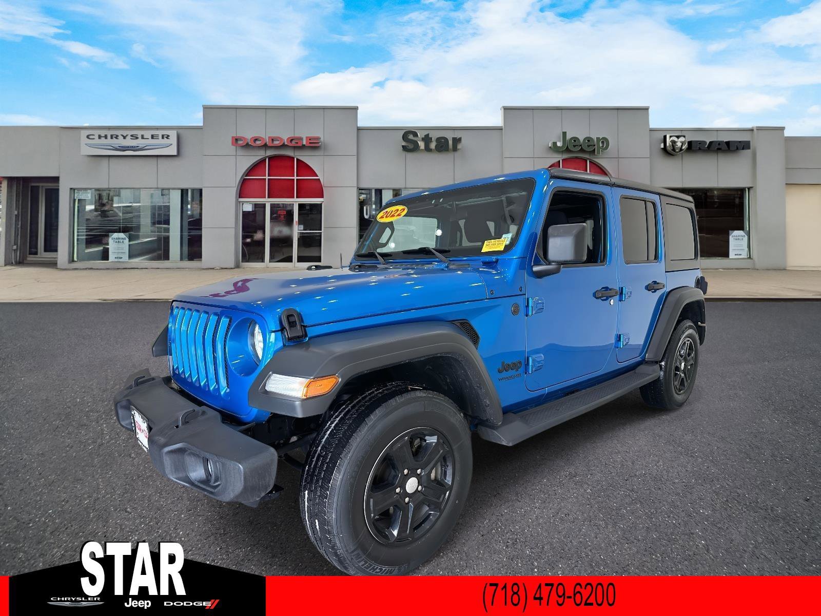Carfax One-Owner. Hydro Blue Pearl Coat 4D Sport Utility 2022 Jeep Wrangler Unlimited Sport S Tech/Conv Group 4WD 8-Speed Automatic 3.6L V6 24V VVT Non-Smoker, Fully Serviced, Star Certified, 110 MPH Vehicle Max Speed Calibration, 2-Door Passive Entry, Front Door Locks, 3.45 Rear Axle Ratio, 4-Wheel Disc Brakes, ABS brakes, Air Conditioning, Air Conditioning w/Auto Temperature Control, Air Filtering, AM/FM radio, Apple CarPlay/Android Auto, Automatic Headlamps, Aux Battery, Black 3-Piece Hard To... (more)