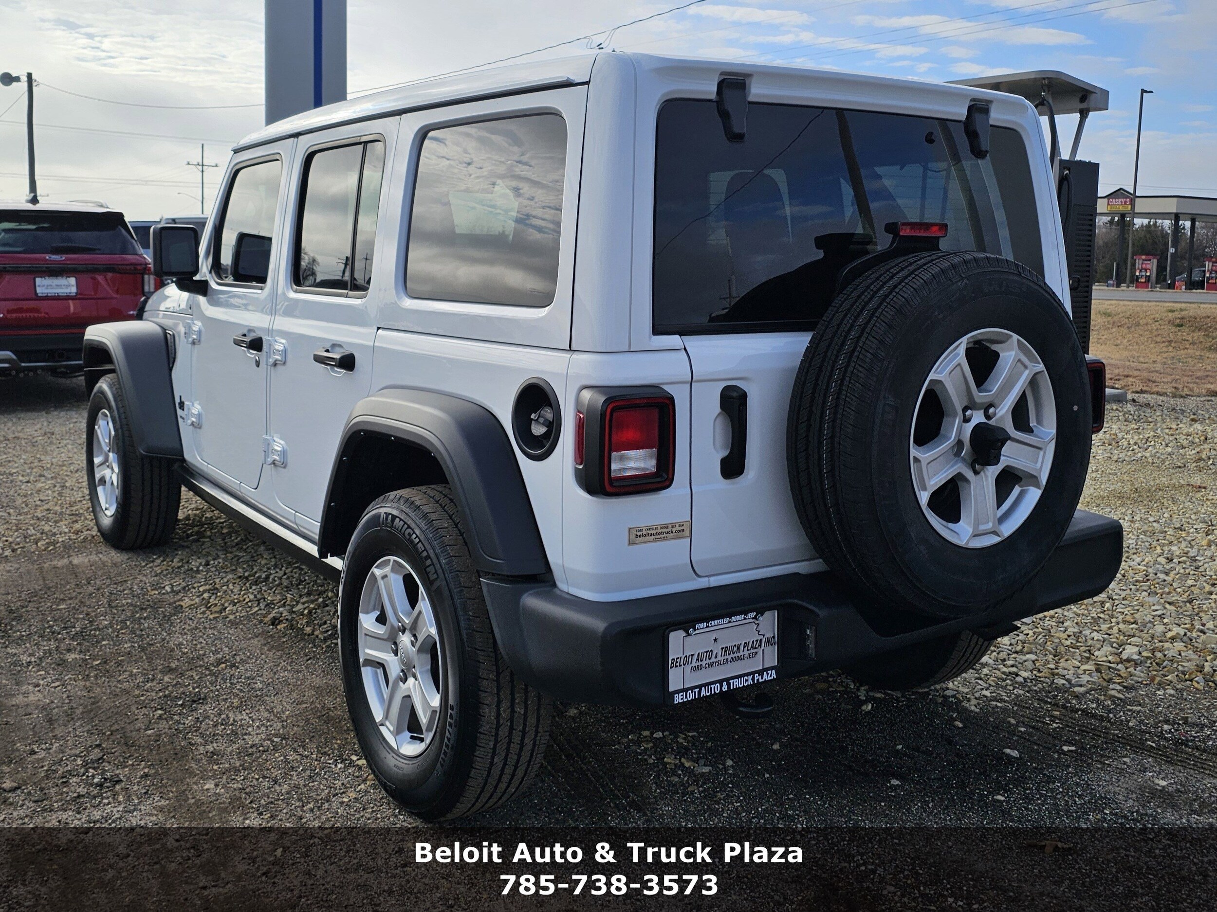 Boasts 24 Highway MPG and 19 City MPG! This Jeep Wrangler boasts an Intercooled Turbo Premium Unleaded I-4 2.0 L/122 engine powering this Automatic transmission. Wheels: 17" x 7.5" Tech Silver Aluminum (STD), Tires: 245/75R17 All Season (STD), Radio: Uconnect 4C Nav w/8.4" Display. This Jeep Wrangler comes equipped with these options: GVWR: 5,400 lbs (STD), Engine: 2.0L I4 DOHC DI Turbo w/ESS, Corning Gorilla Glass, Convenience Group -inc: Universal Garage Door Opener, Bright White Clearcoat, Black, Cloth low-back bucket seats, Anti-Spin Differential Rear Axle, Alpine Premium Audio System -inc: 220 Amp Alternator, 3.45 Rear Axle Ratio (STD), Wireless Phone Connectivity. Stop by today. Come in for a quick visit at Beloit Auto and Truck Plaza, 3133 US Hwy 24, Beloit, KS 67420 to claim your Jeep Wrangler!