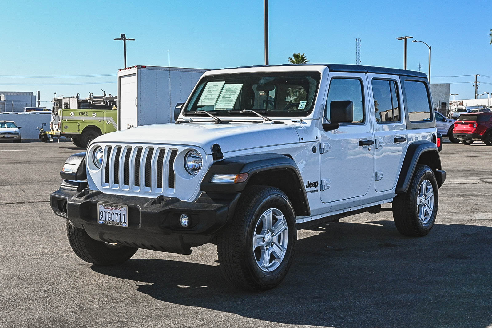Clean CARFAX. Bright White Clearcoat 2022 Jeep Wrangler Unlimited Sport S 4WD 8-Speed Automatic 2.0L I4 DOHC Automatic Headlamps, Deep Tint Windows, Front 1-Touch Down Power Windows, Leather Wrapped Steering Wheel, Power Heated Mirrors, Quick Order Package 22S Sport S, Remote Keyless Entry, Security Alarm, Speed Sensitive Power Locks, Sport S, Sun Visors with Illuminated Vanity Mirrors, Wheels: 17″ x 7.5″ Tech Silver Aluminum. Recent Arrival!