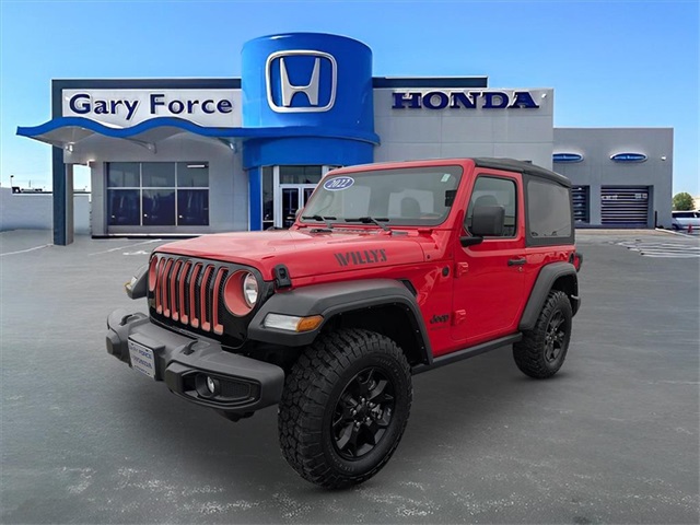Clean CARFAX. Odometer is 2498 miles below market average! Firecracker Red Clearcoat 2022 Jeep Wrangler 2D Sport Utility Willys 4WD 8-Speed Automatic 3.6L V6 24V VVT.