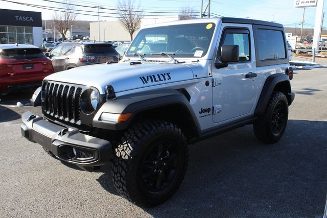 2022 Silver Zynith Clearcoat Jeep Wrangler 2.0L I4 DOHC 4WD 8-Speed Automatic Tasca special sale price, 4WD / Four Wheel Drive, Bluetooth, Hands Free, ABS brakes, Compass, Electronic Stability Control, Low tire pressure warning, ParkView Rear Back-Up Camera, Traction control. Odometer is 21605 miles below market average! Clean CARFAX. Specifications, features, safety and warranty data are based on what is available as standard specs/features per trim level, for the designated model-year, and may not apply to vehicles with added packages or options. See dealer for written warranty information. Dealer makes no guarantees or warranties, either expressly or implied, with respect to the accuracy of any data listed on this page which was obtained from third party sources. All vehicles are subject to prior sale. Prices include all eligible factory rebates to dealer. Prices do not include upfits, plows, or other accessories. Price does not include applicable tax, title, license, processing and/or documentation fees, and any emissions testing charges. Doc fees vary by state (Rhode Island $399, Massachusetts $499, Connecticut $899, New York $175, Illinois $367.70, Florida $995 doc fee and $229 electronic filing fee, Pennsylvania $477.70, Missouri $604.70, New Jersey $795). Price and availability subject to change. Manufacturer's Suggested Retail Price (MSRP) is listed for customer information and customer comparison purposes only, and the actual sales price may vary depending on changing market conditions and other factors. Any information contained on this page should be used for informational purposes only. All vehicles may not be physically located at this dealership but may be available for delivery through this location. Please contact the dealership for more specific information. You Will Be Satisfied.