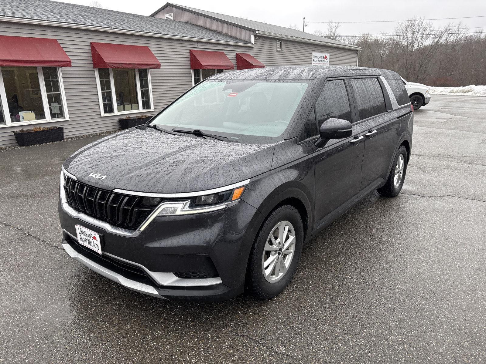 Take a look at this fresh trade that we just got in! This 2022 Kia Carnival LX just hit the lot and is ready for its next home. It is nicely equipped with options and has been freshly serviced and detailed. Stop by or give us a call at 207-922-2277! Vehicle may or may not have all of the computer-generated equipment/options listed. The system lists all options commonly available within that package, but this does not mean this vehicle necessarily is equipped with all of them. Please verify desired options prior to purchase.