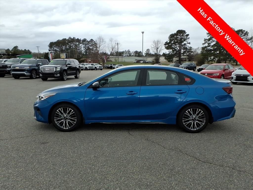 Turn heads and drive with confidence in this one-owner Sporty Blue 2022 Kia Forte GT-Line, a sedan that perfectly blends athletic styling, advanced safety, and everyday efficiency. With its bold design, rear spoiler, 17 graphite-finish alloy wheels, and sleek body-color accents, this GT-Line stands out from ordinary compact sedans while still delivering the practical ownership experience drivers love from Kia. Under the hood, the 2.0L 4-Cylinder MPI engine offers an excellent balance of performance and fuel efficiency, making this Forte an outstanding choice for commuters and road-trip travelers alike. Smooth handling is supported by 4-wheel disc brakes, electronic stability control, traction control, and a front independent suspension, giving you confident performance in a wide variety of driving conditions while keeping ownership economical. Safety and driver-assistance technology are major highlights of this Forte thanks to the GT-Line Premium Package. This package adds intelligent features like Forward Collision-Avoidance Assist with Cyclist Detection, Smart Cruise Control with Stop & Go, and Navigation-Based Smart Cruise Control, helping maintain safe distances and respond to changing traffic conditions. Highway Driving Assist (HDA) further enhances highway travel, while the Electronic Parking Brake with Auto Hold, rear exterior parking camera, auto high-beam headlights, multiple airbags, and advanced braking systems provide additional peace of mind for you and your passengers. Inside the cabin, the GT-Line Sport Premium Package transforms the driving experience with premium comfort and convenience. The multi-adjustable 10-way power drivers seat ensures the perfect driving position, while heated and ventilated front seats keep you comfortable in any season. Stylish and durable SynTex seating material, rear air vents, and a rear USB charge port keep everyone comfortable and connected, making this Forte ideal for both daily drives and longer journeys. Technology is front and center with an impressive infotainment setup that includes Apple CarPlay and Android Auto, built-in navigation, SiriusXM capability, and the incredible harman/kardon premium audio system that fills the cabin with crisp, immersive sound. You'll also enjoy thoughtful conveniences like wireless phone charging, remote keyless entry, dual-zone automatic climate control, steering-wheel mounted controls, and UVO eServices connectivity. Adding even more enjoyment to your drive is the power sunroof with sunshade, letting in natural light and fresh air at the touch of a button. Details like LED overhead lighting, a leather-wrapped steering wheel and shift knob, sport seats, and illuminated entry complete the refined yet sporty interior atmosphere. This Forte also comes with remaining factory warranty coverage up to 60,000 miles, giving you extra confidence in your purchase. When you combine its strong safety technology, premium GT-Line packages, standout styling, modern tech features, and impressive fuel efficiency, this 2022 Kia Forte GT-Line represents a smart and stylish choice for drivers looking for value without sacrificing comfort or performance.