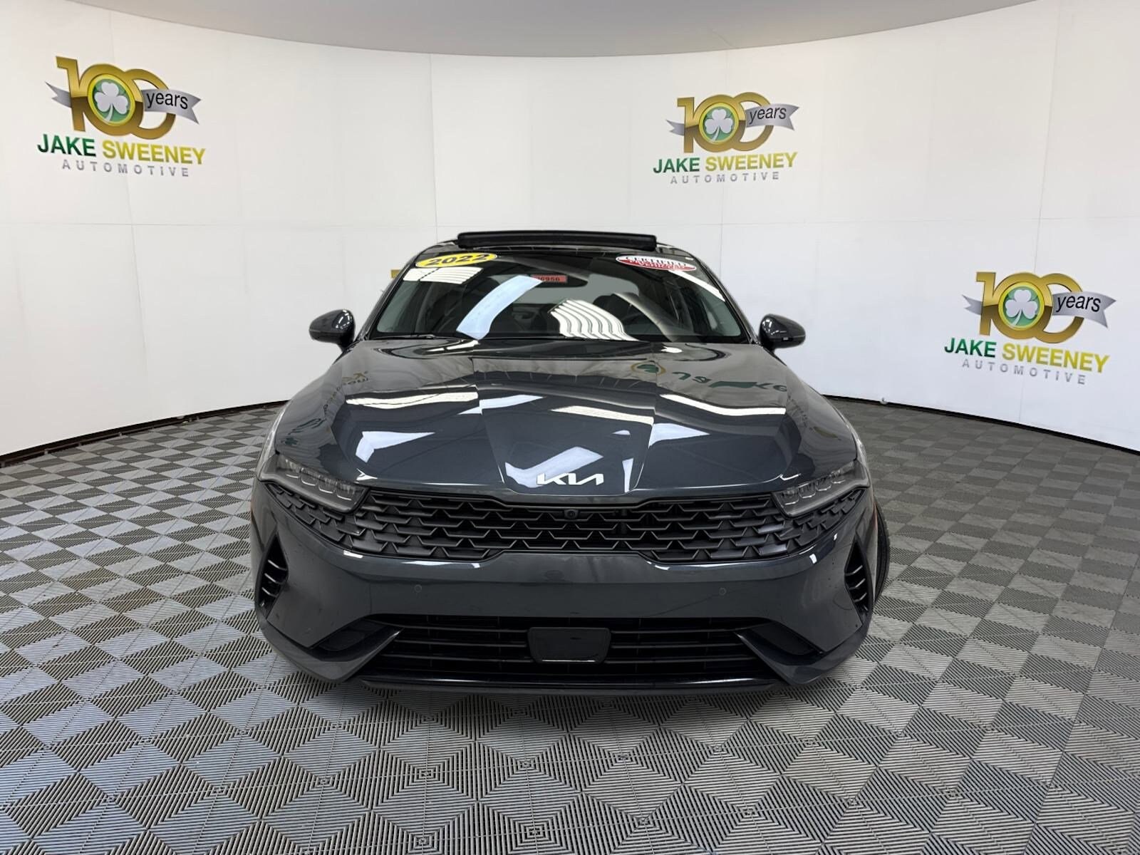 Our One Owner, No Accidents Reported 2022 Kia K5 EX Sedan with the Premium Package is bold and sophisticated in Gravity Gray! Powered by a TurboCharged 1.6 Liter 4 Cylinder generating 180hp connected to an 8 Speed Automatic transmission to command your world with ease. This Front Wheel Drive sedan also rewards you by scoring nearly 38mpg on the highway and showing off a thrilling design. It's a sporty look detailed by LED lighting, a panoramic sunroof, a hands-free trunk, bold alloy wheels, and our package's heated power-folding mirrors with built-in turn signals. Slide inside the EX cabin that greets you with world-class comfort from leatherette heated/ventilated front seats, 10-way power for the driver, dual-zone automatic climate control, remote/push-button start, and our package's heated leather steering and Bose audio system. Further high-tech help for staying connected includes a 10.25-inch touchscreen, full-color navigation, wireless charging, Android Auto/Apple CarPlay, and Bluetooth. Features like those will come in handy on almost every trip. More of Kia's smart technology helps keep you out of harm's way, like our package's surround-view monitor, nav-linked adaptive cruise control, enhanced forward collision avoidance, and the innovative Highway Driving Assist for hands-on semi-autonomous driving. Our K5 EX brings together brains and beauty that are hard to beat! Save this Page and Call for Availability. We Know You Will Enjoy Your Test Drive Towards Ownership!