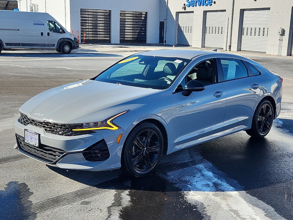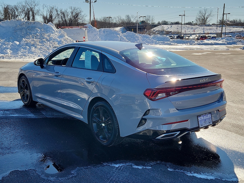"Wolf Gray 2022 Kia K5 GT-Line I4 8-Speed Automatic FWD4-Wheel Disc Brakes 6 Speakers ABS brakes Air Conditioning AM/FM radio: SiriusXM Apple CarPlay & Android Auto Auto High-beam Headlights Automatic temperature control Brake assist Bumpers: body-color Carpeted Floor Mats Cloth/Leatherette Seat Trim Delay-off headlights Driver door bin Driver vanity mirror Dual front impact airbags Dual front side impact airbags Electronic Stability Control Four wheel independent suspension Front anti-roll bar Front Bucket Seats Front Center Armrest Front dual zone A/C Front fog lights Front reading lights Fully automatic headlights Heated door mirrors Illuminated entry Knee airbag Low tire pressure warning Navigation System Occupant sensing airbag Outside temperature display Overhead airbag Overhead console Panic alarm Passenger door bin Passenger vanity mirror Power door mirrors Power driver seat Power steering Power windows Radio data system Radio: AM/FM/MP3 Audio System Rear anti-roll bar Rear seat center armrest Rear side impact airbag Rear window defroster Remote keyless entry Security system Speed control Speed-sensing steering Split folding rear seat Spoiler Sport steering wheel Steering wheel mounted audio controls Tachometer Telescoping steering wheel Tilt steering wheel Traction control Trip computer Turn signal indicator mirrors Variably intermittent wipers Wheels: 7.5J x 18" Gloss Black Machined Finish Alloy. Priced below KBB Fair Purchase Price! 27/37 City/Highway MPG Schaller Auto Group has TWO Used Car Locations: Right off Route 9 in New Britain and Route 9 and the Berlin Turnpike in Berlin. Please call 860-826-2023 to confirm this Vehicle's Location. All of our Pre-Owned Vehicles go through our Comprehensive 125 Point Quality Inspection. Every Schaller pre-owned vehicle comes with warranty coverage! With all budgets in mind we now offer Schaller ‘Value Cars’ starting at $2995 and include a 30 day satisfaction guarantee and all come with a FREE Carfax Vehicle History Report. The Schaller Auto Group is Family Owned and Operated for Over 65 Years and is known for Selling Top Quality Used Vehicles and Standing behind them After the Sale!"