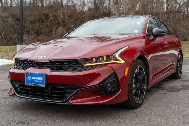 Finished in vibrant Passion Red, this 2022 Kia K5 GT-Line AWD delivers bold styling, sporty performance, and modern technology in a sleek midsize sedan. Powered by a responsive I4 engine paired with a smooth 8-Speed Automatic transmission, the K5 offers an engaging driving experience along with impressive efficiency, while the All-Wheel Drive system provides added confidence and traction for changing road conditions and Central New York winters. The K5 GT-Line stands out with its aggressive design and premium features, making it a standout choice for drivers seeking both style and performance.