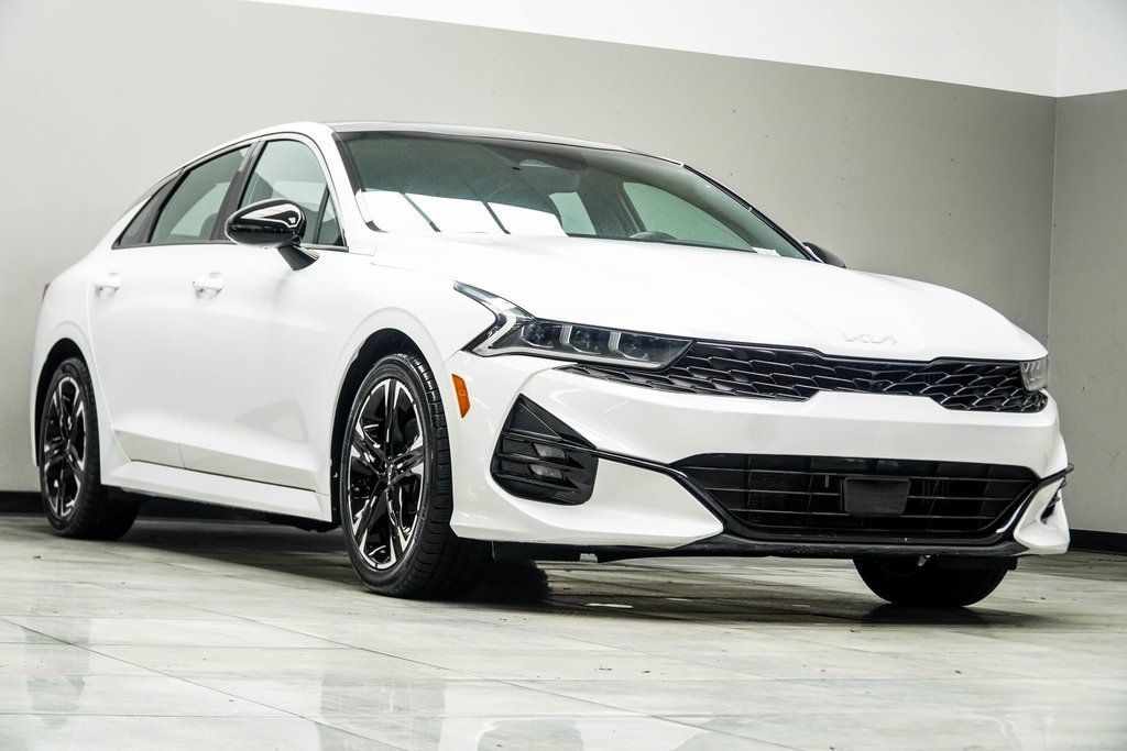 Glacial White Pearl 2022 Kia K5 GT-Line AWD 8-Speed Automatic I4. Recent Arrival! Odometer is 31162 miles below market average! 25/33 City/Highway MPG. We do our best to list all the correct information, however we will not be bound by or responsible for any error or misprint in our advertisement. It is the customer's sole responsibility to verify the accuracy of the prices and mileage with the dealer as well as the existence and condition of any equipment listed. Pricing subject to change without notice. Ad must be printed and presented to the dealer to qualify for discounted price. The vehicle is Pre-Owned, is not new, dents, scratches, wear, tear, previous repairs, paintwork, bodywork, defects, hidden damages, rust and imperfections exists and should be expected. We may or may not have all the keys, owner's manuals, and floor mats, but we will be happy to obtain extra ones for you at our cost.