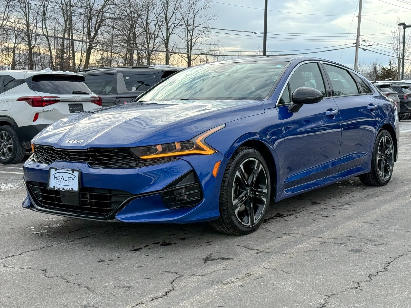 Sapphire Blue 2022 Kia K5 GT-Line I4 8-Speed Automatic AWD. Don't be tricked by below market priced vehicles that charge exorbitant documentation and prep fees. Our pricing is fair, concise and the only documentation fee charged is $175. Check our Google reviews and allow our customers to tell you where you should consider purchasing a pre-owned vehicle in the Tri-State area.