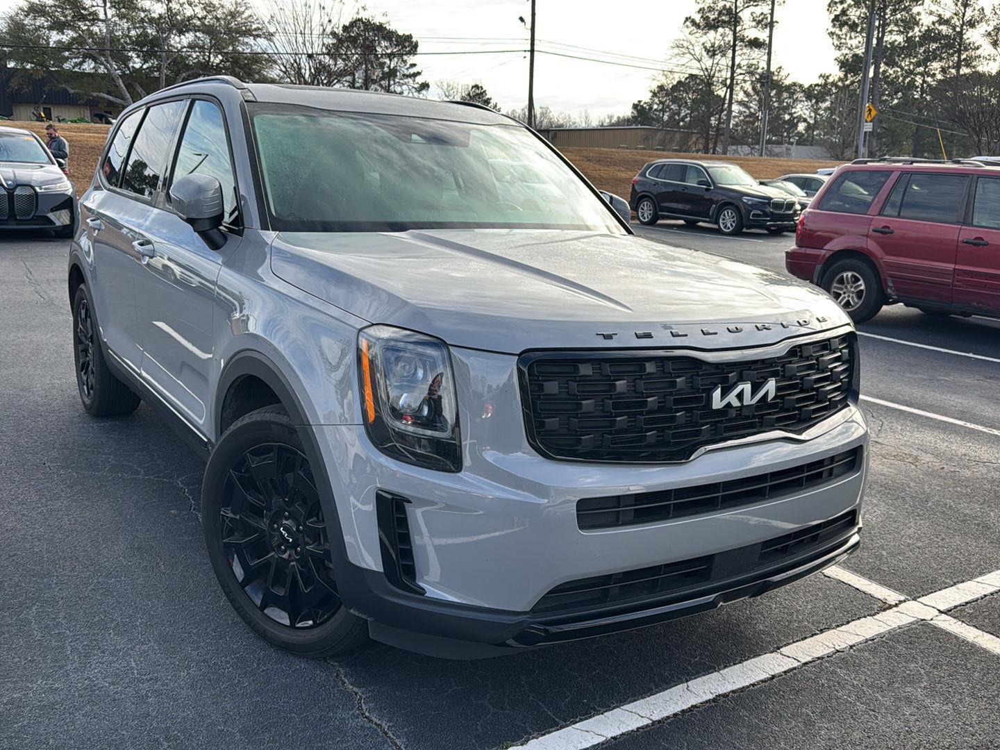 Thank you for choosing BMW of Macon, this Wolf Gray 2022 Kia Telluride EX is a great choice! Check out the following: No Accidents! One Owner! City 19/ Hwy 24. Nightfall Edition Package ($1,395 value). Black Finish Radiator Grille. Gloss Black Finish Front and Rear Door Garnish. Gloss Black Finish Exterior Emblems. Exclusive Black Headlight Bezels. Gloss Black Finish Roof Rails. Front and Rear Gloss Black Finish Bumper Skid Plates. EX Premium Package ($1,695 value). Satin Chrome Roof Rails. 2nd Row Captain Chairs. LED Headlamps.