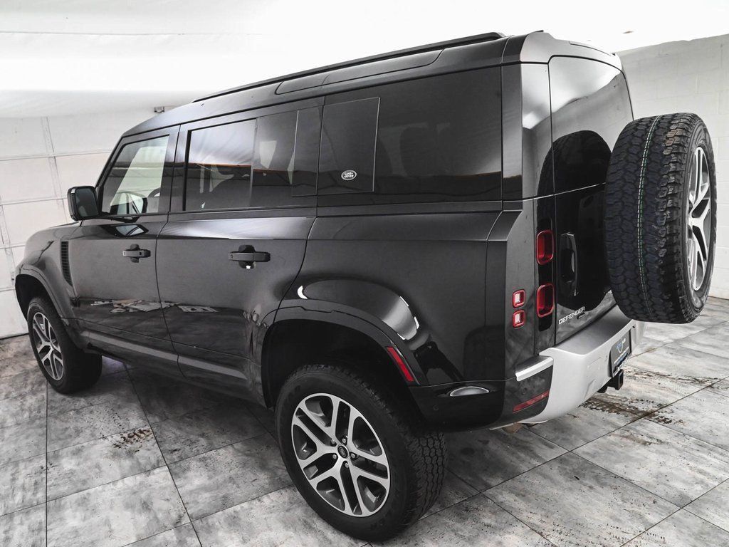 2022 Land Rover Defender 110 XS Edition Recent Arrival! Clean Carfax, One Owner, Defender 110 XS Edition, 4D Sport Utility, 3.0L I6, 8-Speed Automatic, 4WD, Santorini Black Metallic, Leather, 18-Way Climate Front Row Seats, 4-Wheel Disc Brakes, ABS brakes, Air Quality Sensor, AM/FM radio: SiriusXM, Apple CarPlay & Android Auto, Auto High-beam Headlights, Auto tilt-away steering wheel, Auto-dimming door mirrors, Auto-dimming Rear-View mirror, Automatic temperature control, Brake assist, Cruise control, Dual front impact airbags, Dual front side impact airbags, Electronic Stability Control, Four wheel independent suspension, Front dual zone A/C, Front fog lights, Fully automatic headlights, Garage door transmitter: HomeLink, Heated door mirrors, Heated front seats, Heated steering wheel, Illuminated entry, Leather Shift Knob, Leather steering wheel, Low tire pressure warning, Memory seat, Navigation system: Connected Navigation PIVI Pro, Occupant sensing airbag, Overhead airbag, Panic alarm, Power door mirrors, Power driver seat, Power moonroof, Power passenger seat, Radio: 825W 15 Speaker Meridian Surround Sound Sys, Rain sensing wipers, Rear window defroster, Rear window wiper, Remote keyless entry, Security system, Steering wheel memory, Telescoping steering wheel, Traction control, Ventilated front seats, Wheels: 20" Gloss Dark Grey Style 5095. Santorini Black Metallic 2022 Land Rover Defender 110 XS Edition 4WD 8-Speed Automatic 3.0L I6.