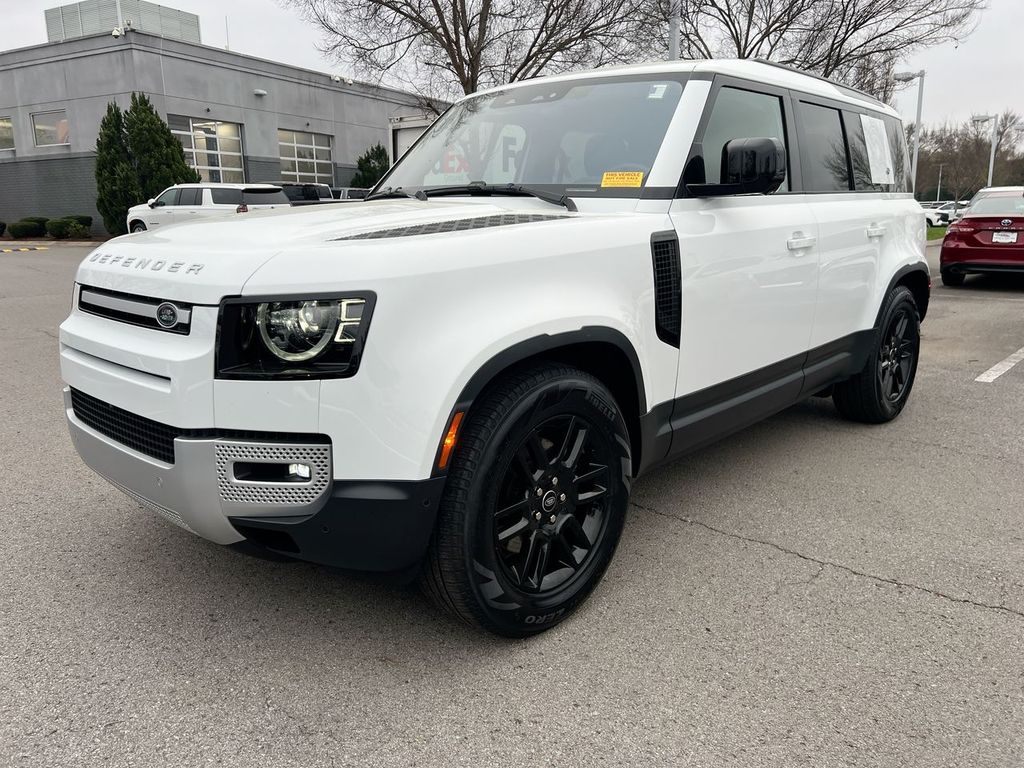 Our dealership has already run the CARFAX report and it is clean. A clean CARFAX is a great asset for resale value in the future. This model features a hands-free Bluetooth phone system. You'll never again be lost in a crowded city or a country region with the navigation system on this vehicle. The leather seats in this vehicle are a must for buyers looking for comfort, durability, and style. Never get into a cold vehicle again with the remote start feature on this 2022 Land Rover Defender 110. Protect it from unwanted accidents with a cutting edge backup camera system. The Land Rover Defender 110 offers Android Auto for seamless smartphone integration. Apple CarPlay: Seamless smartphone integration for the vehicle - stay connected and entertained on the go! This unit stays safely in its lane with Lane Keep Assist. This mid-size suv embodies class and sophistication with its refined white exterior.