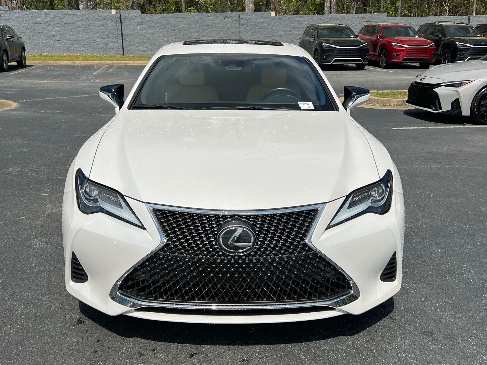 This used 2022 Lexus RC RC 350 Coupe is a luxury vehicle with a V6 engine and rear-wheel drive. It features a comfortable interior with leatherette NuLuxe seats, genuine wood dashboard and door panel inserts, and a digital/analog appearance. The exterior is Eminent White Pearl, and it includes premium features such as a power moonroof, dynamic radar cruise control, and a premium sound system. This car has had 1 owner and is certified as a Lexus Certified Pre-Owned.