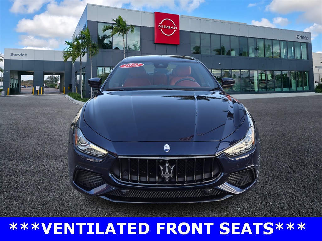 Recent Arrival! Exterior Parking Camera Rear, Navigation System, Power moonroof, Steering wheel mounted audio controls, Wheels: 19" Silver Poseidone. Black 2022 Maserati Ghibli Modena Q4 Odometer is 3010 miles below market average! At Grieco Nissan of Delray Beach, our online mission is to present Internet Value Pricing to ALL our customers. In order to deliver you the most competitive pricing on our pre-owned vehicles, we poll over 20,000 pre-owned websites every hour. This ensures that every one of our valued customers receives real-time Value Pricing on every pre-owned vehicle we sell. At Grieco Nissan of Delray Beach, we do not believe in artificially inflating our pre-owned vehicle prices. We do not play pricing games ...... our goal is to make you a Grieco Customer for Life. All pricing and details provided are believed to be accurate, but we do not warrant or guarantee such accuracy. New vehicles offered may be eligible for manufacturer incentives which may change at any time and are subject to incentive qualification criteria and requirements, and which may be contingent upon manufacturer finance company approval. Manufacturer incentive data and vehicle features information is provided by third parties and believed to be accurate as of the time of publication. Vehicle information is based upon standard equipment and may vary from vehicle to vehicle. Please contact the dealership for complete vehicle information. to correct error or omissions. Prices and payments do not include sales tax or other taxes, tag, title, registration fees, government fees and tag agency fees are not included in the quoted price. Electronic Registration Filing fee of $549, Pre-delivery Service Fee of $1,295, and 2 year LoJack activation are not included in the quoted price. While great effort is made to ensure the accuracy of the information on our website, errors do occur. Further, vehicle listings within this website may not reflect all accurate vehicle items. Accessories and colors may vary. . . Vehicle Photos may not match exact vehicles. Please confirm information and vehicle price and availability of incentives by calling or visiting us at the dealership.
