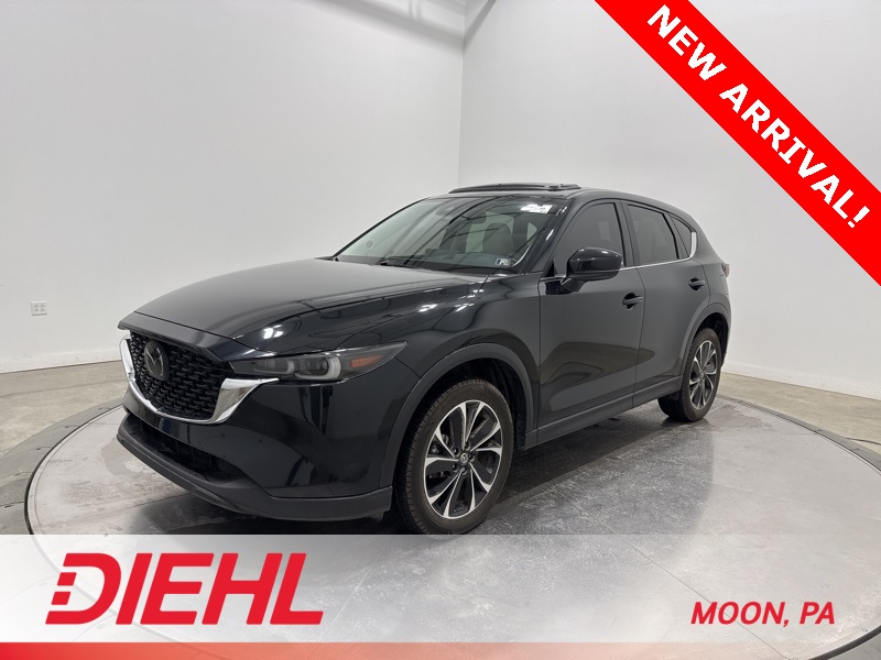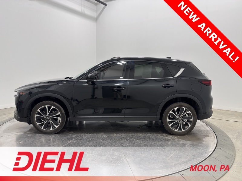 Heated front seats, heated rear seats, heated steering wheel, power liftgate, power moonroof, ventilated front seats. Jet Black Mica 2022 Mazda CX-5 2.5 S Premium Plus Package SKYACTIV® 2.5L 4-Cylinder DOHC 16V 6-Speed Automatic CARFAX One-Owner. Clean CARFAX. This 2022 Mazda CX 5 2.5 S Premium Plus AWD knows how to balance style, confidence, and everyday practicality without trying too hard. Dressed in Jet Black Mica with a refined Parchment leather interior, this compact SUV brings upscale vibes to your daily drive while keeping things comfortable and capable. Under the hood, the 2.5L engine paired with a 6 speed automatic and full time all wheel drive delivers smooth power and confident traction year round. The driving experience is enhanced by adaptive cruise control, blind spot monitoring, lane departure warning with lane keep assist, and front collision mitigation, so highway miles and city traffic both feel more relaxed. Inside, the cabin leans premium in all the right ways. Leather trimmed seating with heated front seats and heated rear seats keeps everyone comfortable, while the heated leather steering wheel and heads up display add a touch of luxury youll appreciate every time you drive. Apple CarPlay and Android Auto, premium audio, navigation, Bluetooth, and smart device integration keep you connected, and the power moonroof brings in fresh air and sunshine when the mood strikes. This Mazda CX 5 is proudly Diversified Certified, giving you extra confidence with a 3 month or 3,000 mile Extended Care Limited Warranty, a 125 point inspection, 24 hour roadside assistance, and a vehicle history report. Its a smart way to enjoy premium features with added peace of mind. If youre looking for a well equipped, stylish, and confident compact SUV, this 2022 Mazda CX 5 2.5 S Premium Plus AWD is ready to impress. Find it today at Diehl of Moon Twp and see why this one stands out from the crowd.