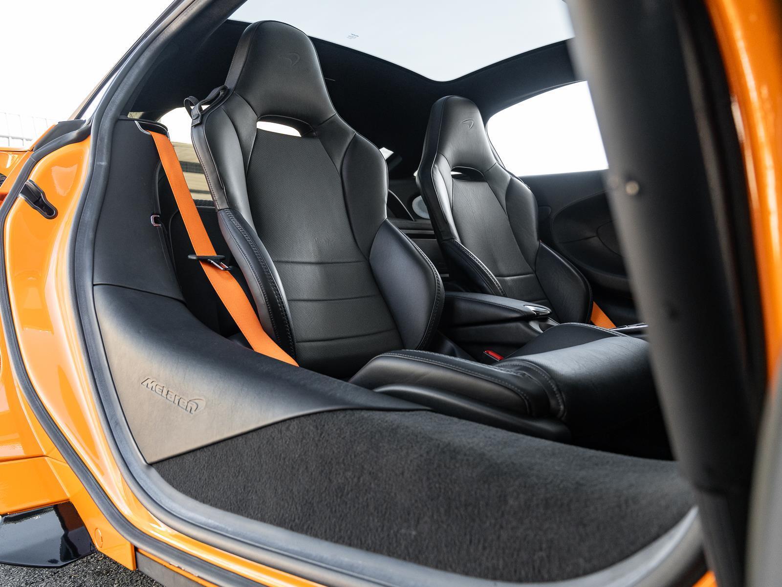 This 2022 McLaren GT finished in vivid McLaren Orange over a Jet Black interior with only 6,045 miles represents a unique interpretation of the modern grand touring supercar, blending McLaren's lightweight engineering with everyday usability and long distance comfort. Power comes from a mid mounted 4.0 liter twin turbocharged V8 producing 612 horsepower and 465 lb ft of torque, paired to a 7 speed Seamless Shift dual clutch transmission driving the rear wheels. The twin turbo V8 delivers strong, linear acceleration with 0 to 60 mph achieved in about 3.1 seconds and a top speed of 204 mph. Built around McLaren's carbon fiber MonoCell II-T monocoque chassis, the car maintains a remarkably low curb weight of about 3,373 lbs, giving the GT an exceptional power to weight ratio and the sharp handling balance expected from the brand. Chassis dynamics are equally advanced, featuring double wishbone suspension front and rear with adaptive dampers and McLaren's Proactive Damping Control system, which continuously adjusts ride behavior to balance comfort and performance across multiple driving modes. Large carbon ceramic brakes provide immense stopping power while lightweight forged wheels and high performance tires deliver excellent grip and stability. The GT was designed to be more refined than its traditional supercars, offering great practicality with a unique rear glass cargo area capable of holding luggage or golf clubs along with a front storage compartment.