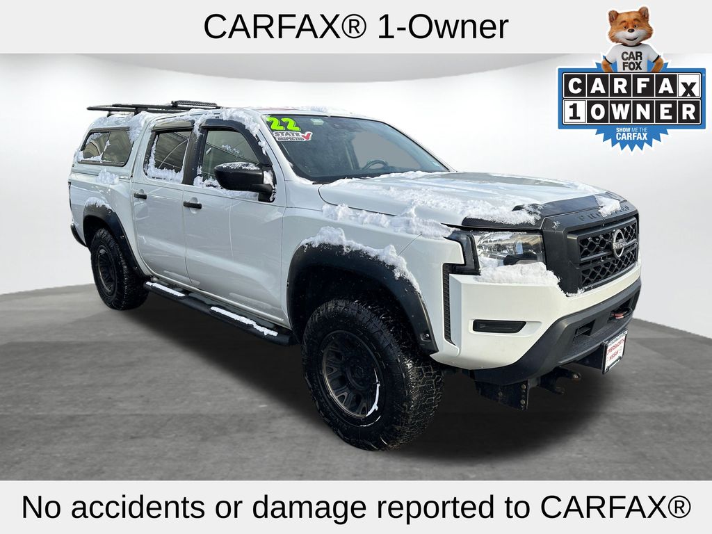 Clean Carfax. Carfax One-Owner. 2022 Nissan Frontier Glacier White 4WD, Apple CarPlay/Android Auto, Rear Automatic Braking (RAB), Rear Cross Traffic Alert (RCTA), Remote keyless entry. 3.8L DI DOHC 24V V6 4WD 9-Speed Automatic. Vehicle pricing includes all offers and incentives. Pricing shown is based on financing through Nissan Motor Acceptance Cooperation, Tax, Title and Tags not included in vehicle prices shown and must be paid by the purchaser. This is easily done by calling us at (603) 692-5200 or by visiting us at the dealership.