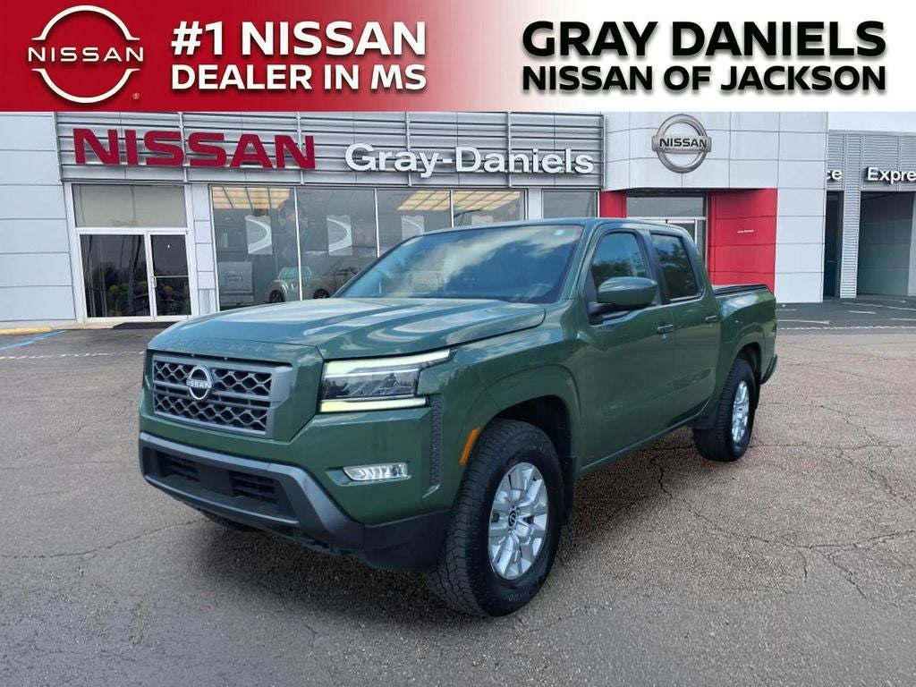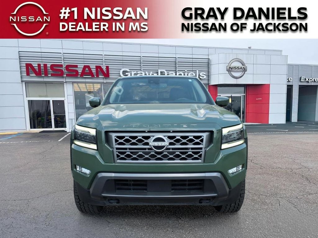 2022 Nissan Frontier SV Tactical Green Metallic. Call 601-899-7400 Today! Recent Arrival! Priced below KBB Fair Purchase Price! SV Package, 4WD, 120V Power Outlet in Bed, 120V Power Outlet in Rear Center Console, 17 Alloy Wheels, 3.692 Axle Ratio, 4-Wheel Disc Brakes, 6 Speakers, ABS brakes, Air Conditioning, Alloy wheels, AM/FM radio: SiriusXM, Anti-whiplash front head restraints, Apple CarPlay/Android Auto, Auto High-beam Headlights, Auto-Dimming Mirror, Auto-Tilt & Slide Sunroof w/Manual Shade, Bed Under-Rail Lighting, Blind Spot Warning, Brake assist, Bumpers: body-color, Delay-off headlights, Door Scuff Protector, Driver door bin, Driver vanity mirror, Dual front impact airbags, Dual front side impact airbags, Electronic Stability Control, Electronic Tailgate Lock, Fender Premium Audio System w/10 Speakers, Floor Mats, Front & Rear Leather Seat Trim (1st/2nd), Front anti-roll bar, Front Bucket Seats, Front Center Armrest, Front Halogen Fog Lights, Front LED Fog Lights, Front reading lights, Front wheel independent suspension, Fully automatic headlights, Halogen Daytime Running Lights, Heated Front Seats, Heated Leather Steering Wheel, Heated Outside Mirrors, High Beam Assist (HBA), HomeLink UGDO, HVAC - Dual-Zone Front Auto A/C, I-Key w/Request Switches on O/S Handles, Illuminated entry, Intelligent Cruise Control, Knee airbag, Lane Departure Warning System, Leather Shift Lever, LED Daytime Running Lights, LED Headlamps and Interior Lighting for the Safety of the State of the Vehicle.