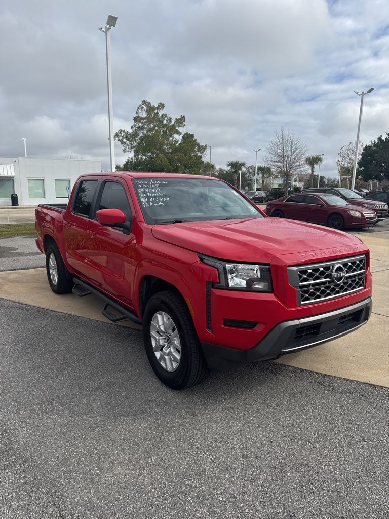 Due to our amazing prices vehicles sell quickly so please call to verify the vehicle you are interested in is still available. 2022 Nissan Frontier SV Red Alert 4D Crew Cab 3.8L DI DOHC 24V V6 4WD CARFAX One-Owner. SV 9-Speed Automatic Dealer Inspected, 4WD. Recent Arrival! Odometer is 5898 miles below market average!