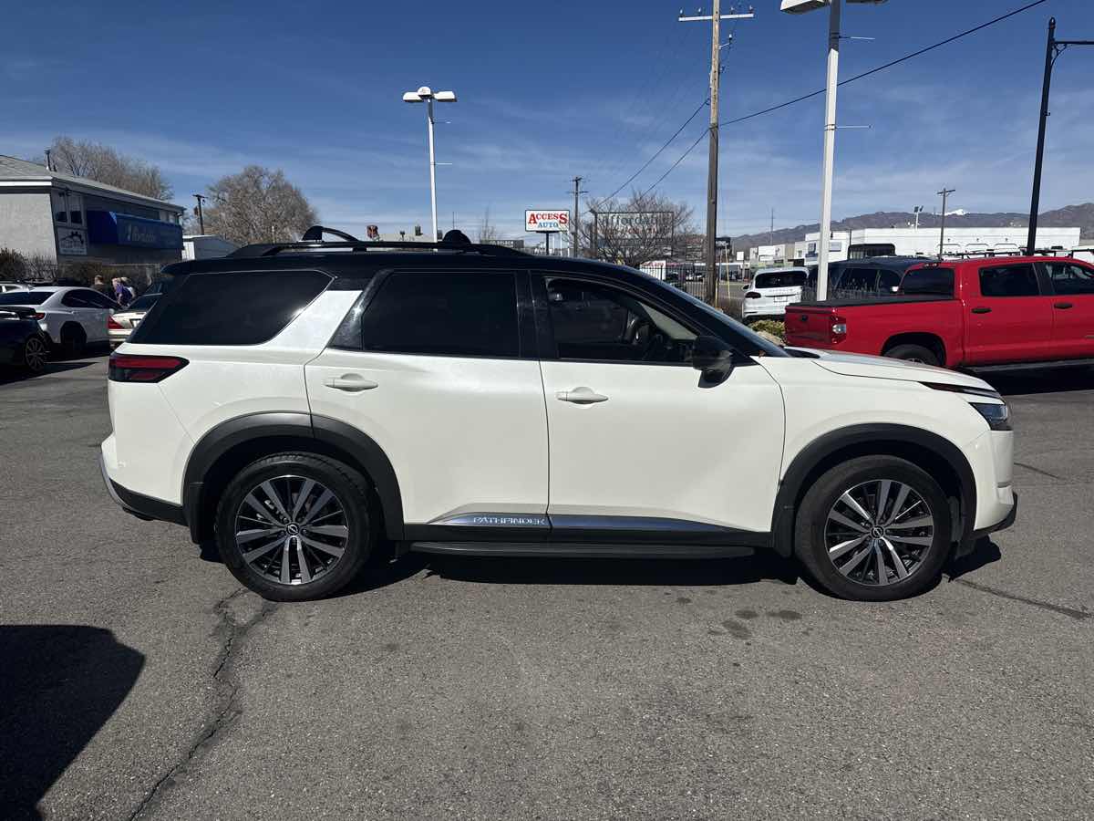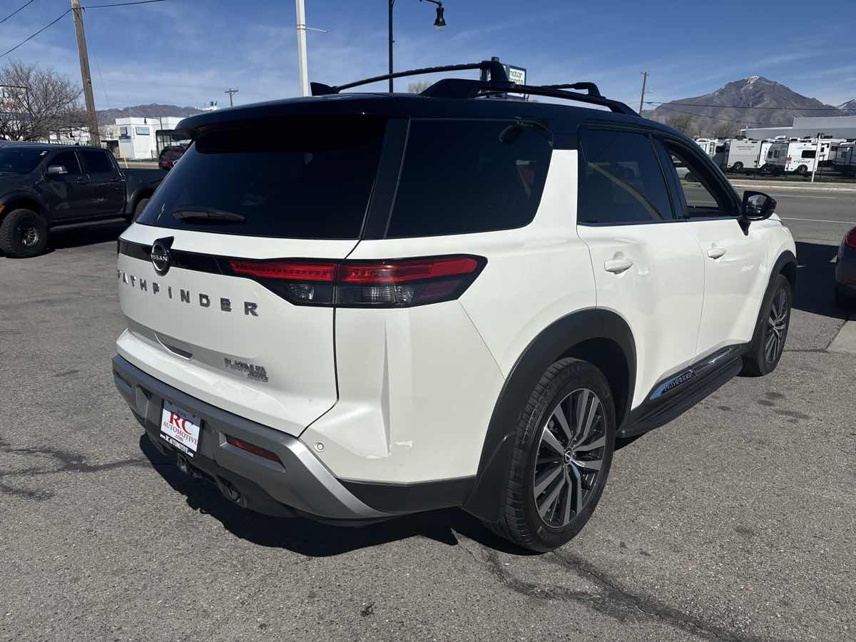 One owner, clean vehicle history, moonroof, Bluetooth handsfree, GPS navigation, local trade-in, rear back up camera, leather interior, 3rd row seating, great value, this vehicle qualifies for an extended warranty up to additional 100K miles, we take all trades and work with all credit unions to ensure the best interest rate possible, call us at 801-268-9911 and one of our friendly staff will take care of all of your needs, visit us at www.rcautomotive.com for a stress free and enjoyable purchase on your future vehicle. CARFAX One-Owner. Clean title. 2022 Nissan Pathfinder Platinum.
