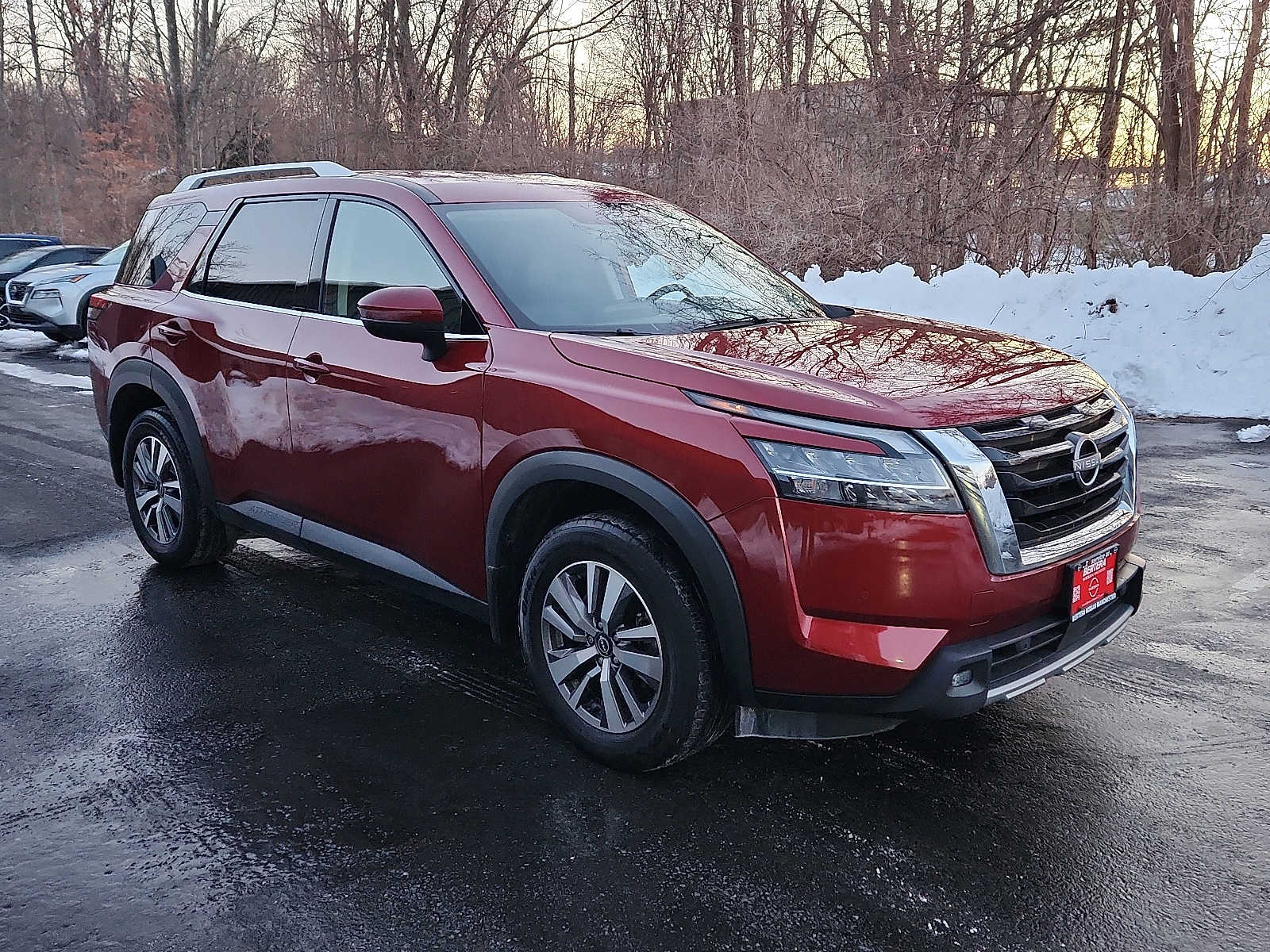 CARFAX 1-Owner. Scarlet Ember Tintcoat exterior and Charcoal interior. FUEL EFFICIENT 27 MPG Hwy/21 MPG City! Heated Leather Seats, Third Row Seat, Nav System, [B93] CROSS BARS, Aluminum Wheels, 4x4, Power Liftgate. Nissan SL with Scarlet Ember Tintcoat exterior and Charcoal interior features a V6 Cylinder Engine with 284 HP at 6400 RPM. At Bertera Nissan Manchester, were committed to offering an unmatched car-buying experience, whether youre in the market for a brand-new Nissan or a quality used vehicle. With an extensive inventory, transparent pricing, and a customer-first philosophy, were here to guide you through every step of the car-buying process. Plus, our state-of-the-art service center is ready to keep your Nissan running smoothly with the latest diagnostic tools and certified technicians.
