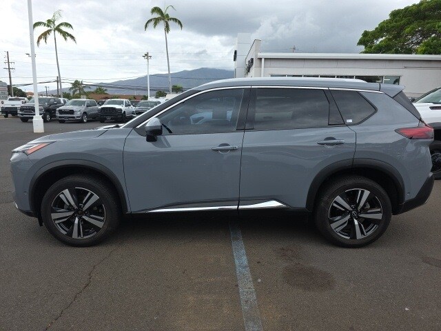 This Nissan Rogue has many features and is well equipped including Head-Up Display Package (Heads-Up Display), 10 Speakers, 19" Aluminum Alloy Wheels, 4-Wheel Disc Brakes, 5.604 Axle Ratio, ABS brakes, Air Conditioning, Alloy wheels, AM/FM radio: SiriusXM, Apple CarPlay/Android Auto, Auto High-beam Headlights, Auto-dimming Rear-View mirror, Automatic temperature control, Bose Premium Audio System, Brake assist, Bumpers: body-color, Delay-off headlights, Driver door bin, Driver vanity mirror, Dual front impact airbags, Dual front side impact airbags, Electronic Stability Control, Emergency communication system: NissanConnect Services, First Aid Kit, Floor Mats w/2-Piece Cargo Area Protector, Four wheel independent suspension, Front anti-roll bar, Front Bucket Seats, Front Center Armrest, Front dual zone A/C, Front fog lights, Front reading lights, Fully automatic headlights, Heated door mirrors, Heated Front Bucket Seats, Heated front seats, Heated rear seats, Heated steering wheel, Illuminated entry, Knee airbag, Low tire pressure warning, Memory seat, Navigation system: NissanConnect Navigation, Occupant sensing airbag, Outside temperature display, Overhead airbag, Overhead console, Panic alarm, Passenger door bin, Passenger vanity mirror, Power door mirrors, Power driver seat, Power Liftgate, Power moonroof, Power passenger seat, Power steering, Power windows, Quilted Semi-Aniline Leather Seat Trim, Radio data system, Radio: AM/FM NissanConnect w/Navigation, Rear air conditioning, Rear anti-roll bar, Rear reading lights, Rear seat center armrest, Rear side impact airbag, Rear window defroster, Rear window wiper, Remote keyless entry, Roof rack: rails only, Security system, Speed control, Speed-Sensitive Wipers, Split folding rear seat, Spoiler, Steering wheel mounted audio controls, Tachometer, Telescoping steering wheel, Tilt steering wheel, Traction control, Trip computer, Turn signal indicator mirrors, and Variably intermittent wipers. Boulder Gray Pearl 2022 Nissan Rogue Platinum FWD CVT with Xtronic 1.5L I3 Turbocharged DOHC 12V LEV3-ULEV50 201hp 29/36 City/Highway MPG.