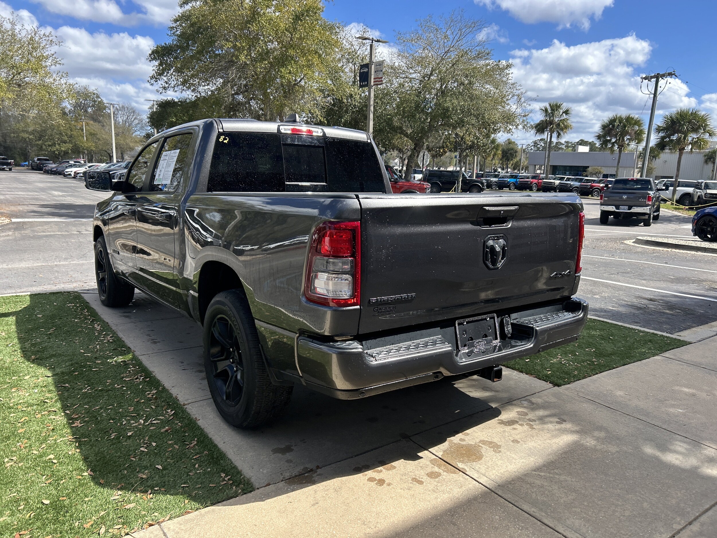 3 months or 3,000 Powertrain Warranty included! Recent Arrival! New Price! 2022 Ram 1500 Big Horn/Lone Star Granite Crystal Metallic Clearcoat WINDOW TINT, 115V Auxiliary Power Outlet, 115V Auxiliary Rear Power Outlet, 4-Wheel Disc Brakes, 400W Inverter, 4G LTE Wi-Fi Hot Spot, 8.4" Touchscreen Display, ABS brakes, Air Conditioning ATC w/Dual Zone Control, AM/FM radio, Anti-Spin Differential Rear Axle, Apple CarPlay, Auto-Dimming Exterior Driver Mirror, Auto-Dimming Rear-View Mirror, Bluetooth Handsfree Phone & Audio, Bucket Seats, Class IV Receiver Hitch, Compass, Dome Dual LED Reading Lamp, Dual-Pane Panoramic Sunroof, Electronic Stability Control, Emergency communication system: SiriusXM Guardian, Front fog lights, Fully automatic headlights, Google Android Auto, GPS Navigation, HD Radio, Heated Front Seats, Heated Steering Wheel, Illuminated entry, Integrated Voice Command w/Bluetooth, Leather steering wheel, Low tire pressure warning, Outside temperature display, Overhead console, Overhead LED Lamps, Panic alarm, ParkSense Front/Rear Park Assist w/Stop, ParkView Rear Back-Up Camera, Passenger vanity mirror, Power 2-Way Driver Lumbar Adjust, Power 8-Way Driver Seat, Power Adjustable Pedals, Power door mirrors, Power windows, Premium Overhead Console, Rear Power Sliding Window, Rear step bumper, Rear Wheelhouse Liners, Remote keyless entry, Remote Start System, Security Alarm, SiriusXM w/360L, Speed control, Split folding rear seat, Steering wheel mounted audio controls, Sun Visors w/Illuminated Vanity Mirrors, Telescoping steering wheel, Tilt steering wheel, Universal Garage Door Opener, Wheels: 20" x 9.0" Premium Paint/Polished (DISC).