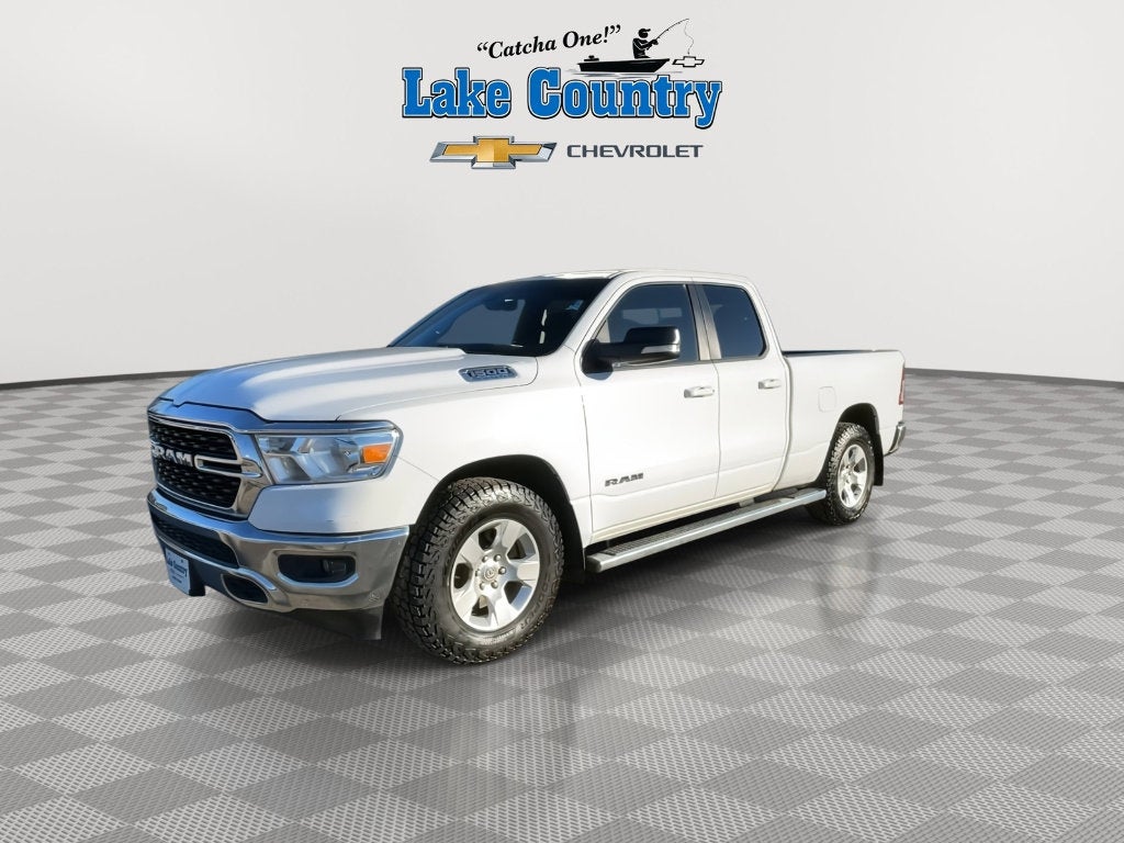 Clean Carfax 2022 Ram Ram Pickup 1500 Big Horn Bright White Clear Coat 89,384 Miles 4X4, 7.0 In. TFT Cluster Color Display, 8-Speed Shiftable Automatic, Big Horn Level 1 Equipment Group, Chrome Wheel to Wheel Side Steps, Connected Services Delete Credit, Deluxe Cloth Bucket Seats, Front and Rear Rubber Floor Mats, Pentastar eTorque 3.6L V6 305hp 269ft. lbs., Power Locking Tailgate, Quick Order Package 23Z, Rear Wheelhouse Liners, Rearview Camera System Check out this 2022 Ram 1500 Big Horn Quad Cab 4x4 in classic white, built for power, comfort, and versatility. Equipped with the Big Horn Level 1 Equipment Group, this truck offers standout features like Uconnect infotainment with Bluetooth®, a 7.0-inch TFT color display, and a convenient 8-speed shiftable automatic transmission paired with the robust Pentastar eTorque 3.6L V6 engine. Enjoy chrome wheel-to-wheel side steps, aluminum alloy wheels, and a class III trailer hitch with both 7-pin and 4-pin wiring for all your towing needs. The spacious 6.4 ft. bed features a power locking tailgate and handy tie-down anchors for secure cargo. Inside, you'll find deluxe cloth bucket seats, push-button start, and a leather-trimmed steering wheel with mounted controls for cruise, audio, and voice operations. Safety is covered with a rearview camera, front and rear side curtain airbags, and a full suite of stability and traction controls. This is a well-maintained, capable truck ready for work or play-schedule your test drive today!