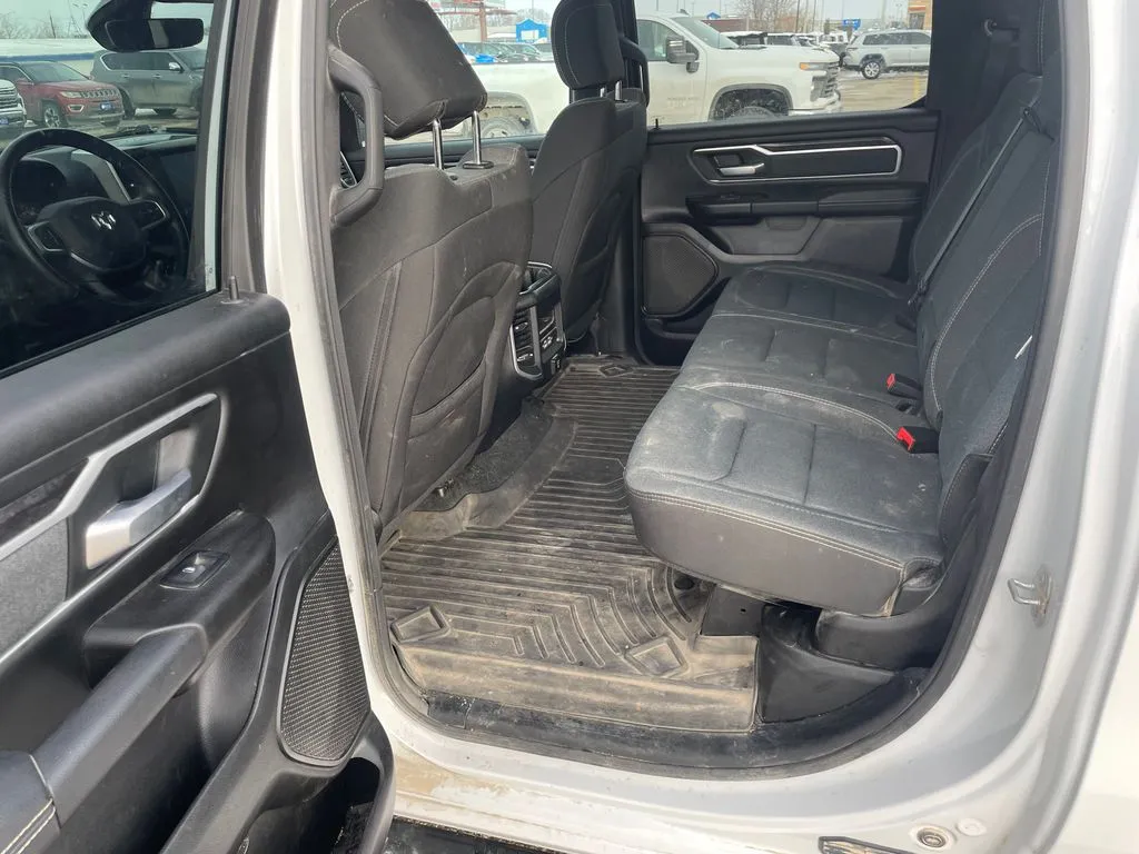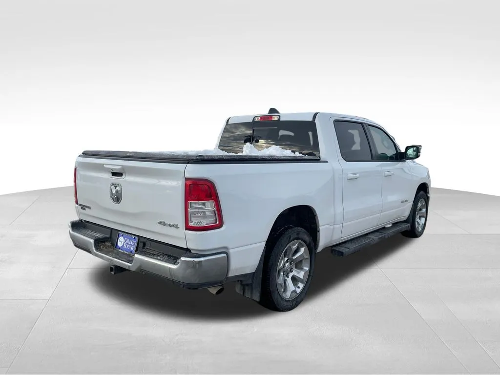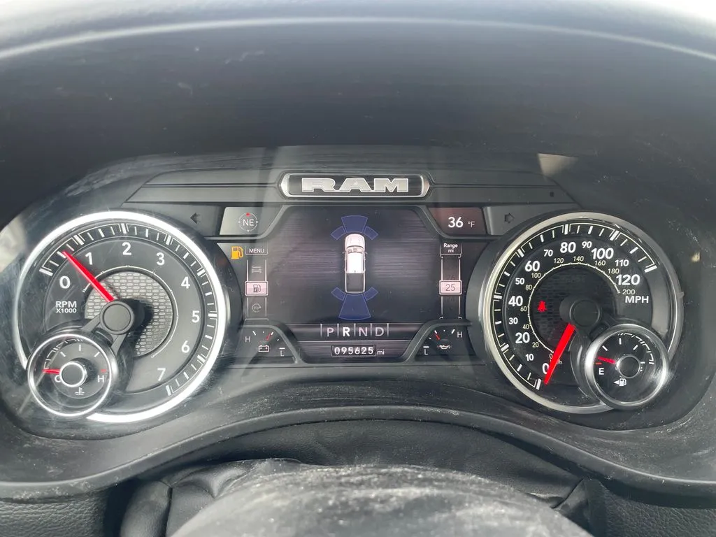 Discover the versatile 2022 Ram 1500 Big Horn/Lone Star, a robust pickup truck that combines reliability with modern amenities. With just under 96,000 miles, this used vehicle sports a striking Bright White Clearcoat exterior complemented by a sleek black interior, offering a perfect blend of style and comfort. Powered by a 3.6-liter V6 engine with 305 horsepower and 269 lb-ft of torque, it delivers confident performance while maintaining an impressive fuel economy of 19 mpg city and 24 mpg highway. The 8-speed automatic transmission paired with a proven 4WD system ensures optimal handling across varied terrains. Whether you're hauling cargo or embarking on a family adventure, this Ram 1500 is equipped with a tow package, making it a dependable workhorse. Featuring modern connectivity options like Apple CarPlay, Bluetooth, and satellite radio readiness, along with convenient features such as heated seats, push start, fog lights, and a backup camera, this truck combines technology and utility seamlessly for an elevated driving experience. This used Ram 1500 also prioritizes safety and security, incorporating essential features to protect occupants and provide peace of mind. It includes 4-wheel anti-lock braking system (ABS) for enhanced control, emergency braking preparation to assist in sudden stops, and auto-locking power door locks for added security. Brake drying technology ensures optimal braking performance in wet conditions, while the electronic parking brake with auto-off function adds convenience and safety during parking maneuvers. These features work together to provide a secure driving environment, whether on city streets or rugged off-road trails.