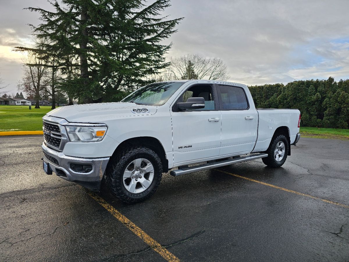 The 2022 Ram 1500 Clean Title Big Horn 4x4 Crew Cab stands out with its commanding presence, boasting a Bright White Clearcoat exterior that enhances its rugged yet sleek design. Complementing its bold exterior, the interior offers a sophisticated Diesel Gray/Black color scheme, designed to provide both comfort and style for drivers and passengers alike. Under the hood, this truck is powered by a robust 5.7L V8 HEMI engine with Multi-Displacement System (MDS) and Variable Valve Timing (VVT), ensuring a powerful performance on and off the road. This versatile truck also features wheel-to-wheel side steps, providing easy access while adding to the truck's functional design. The combination of a 6'4" box and crew cab ensures ample space for both passengers and cargo, making it ideal for both work and leisure activities. With a drivetrain configured for Four Wheel Drive, the Ram 1500 Big Horn is well-equipped for a variety of road conditions. This blend of performance, style, and practicality makes the Ram 1500 Big Horn an exceptional choice for those seeking both power and versatility in a truck.