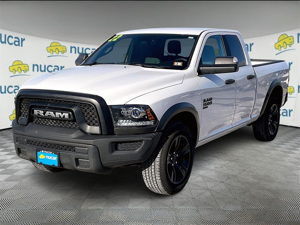 Nucar Certified Pre-Owned vehicle!, one owner, clean Carfax report/no accidents reported, Bluetooth/hands free smartphone integration, back up camera, extra clean, fully detailed and serviced, 2022 Ram 1500 Classic, 4x4, Apple CarPlay & Google Android Auto, 6'4" bed, 1500 Classic Warlock, 4D Quad Cab, 3.6L V6 24V VVT, 8-Speed Automatic, 4WD, Bright White Clearcoat, Black Premium Cloth Bucket Seats, 8.4" Touchscreen Display, Air Conditioning ATC w/Dual Zone Control, AM/FM radio: SiriusXM, Apple CarPlay, Bi-Function Halogen Projector Headlamps, Cluster 7.0" TFT Color Display, Electronics Group, Fully automatic headlights, Integrated Voice Command w/Bluetooth, ParkSense Rear Park Assist System, ParkView Rear Back-Up Camera, Quick Order Package 29F Warlock, Radio: Uconnect 5 w/8.4" Display, Remote keyless entry, SiriusXM Guardian - Included Trial (B), Trailer Tow Group, Wheels: 20" x 9" Semi-Gloss Black Aluminum. 2022 Ram 1500 Classic Warlock 4WD. Bright White Clearcoat. Carfax One-Owner. Stop by Nucar Automall of Tilton, located at 40 E. Main St in Tilton, NH. We have the best selection of quality pre-owned vehicles in all of central NH. Need financing? We have financing available for all credit types. Our goal is 100% credit approval. Call 603-286-3141 today to schedule your no-obligation test drive. Don't forget to ask about our free home delivery service! 3 months/4,000 miles powertrain warranty! Free state inspections for life! Can't find time in your day to make it to the dealership? Ask about our new in-home delivery service for NH, MA, VT, ME, CT and RI.